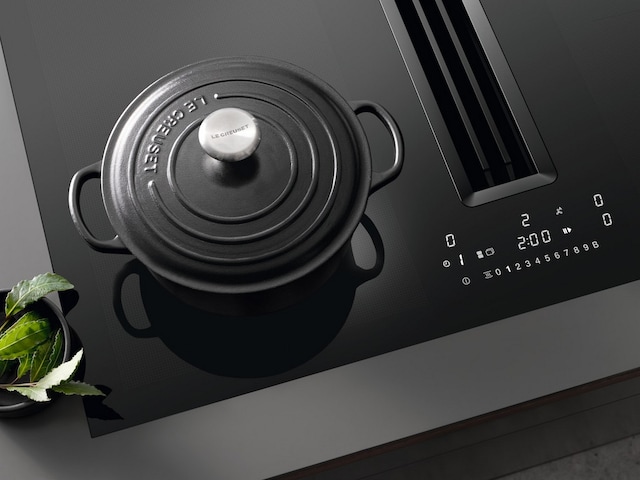 Redusert design: Mieles ventilatorer er diskrete og elegante – og oppfyller høye krav når det gjelder estetikk og funksjonalitet. Med innfelte ventilatorer kan du enkelt skyve gryter og panner på platetoppen din – uten noen barrierer.