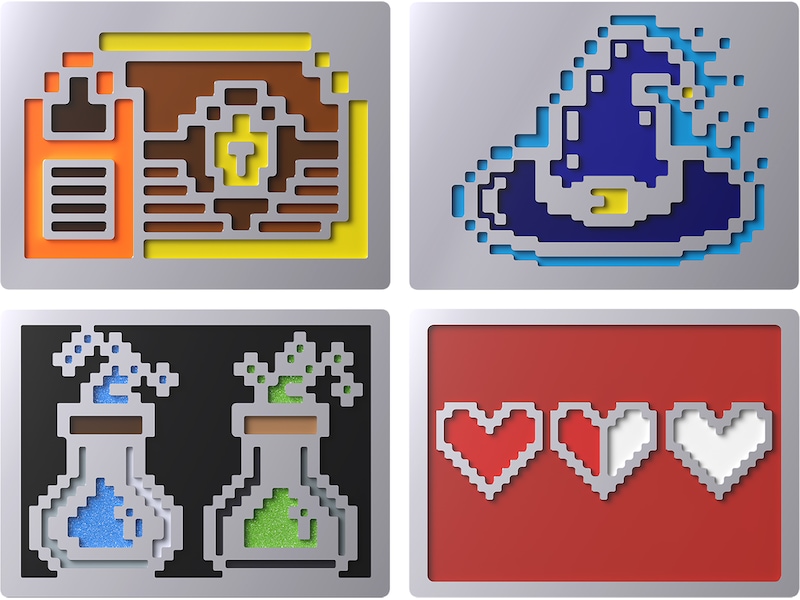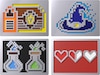 Velg fra 3 forskjellige temaer: Søt, 8-bit og abstrakt. Hver temapakke inneholder et sett med 4 merker.