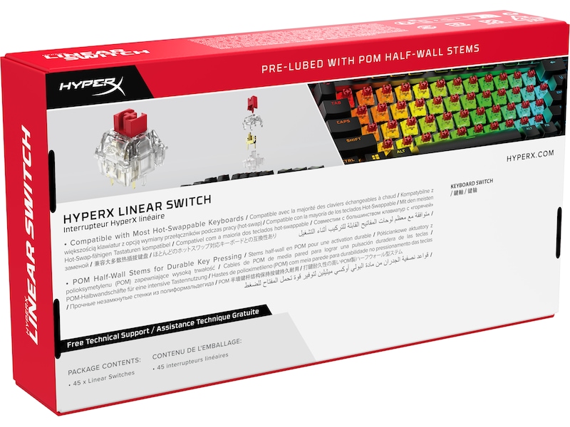 Med en aktiveringskraft på 40 g og en kort 1,8 mm aktiveringsvei er HyperX Linear Switches tilpasset for gaming på høyt nivå.