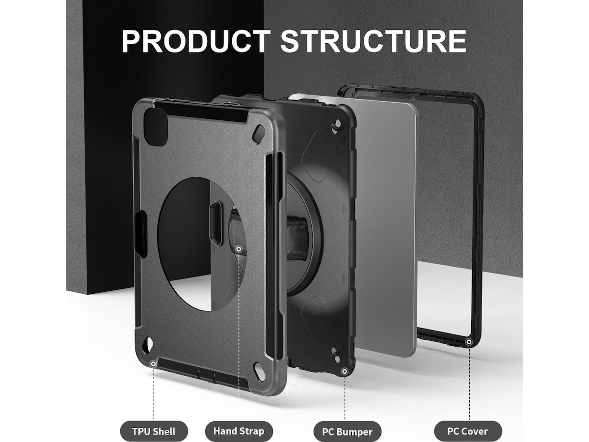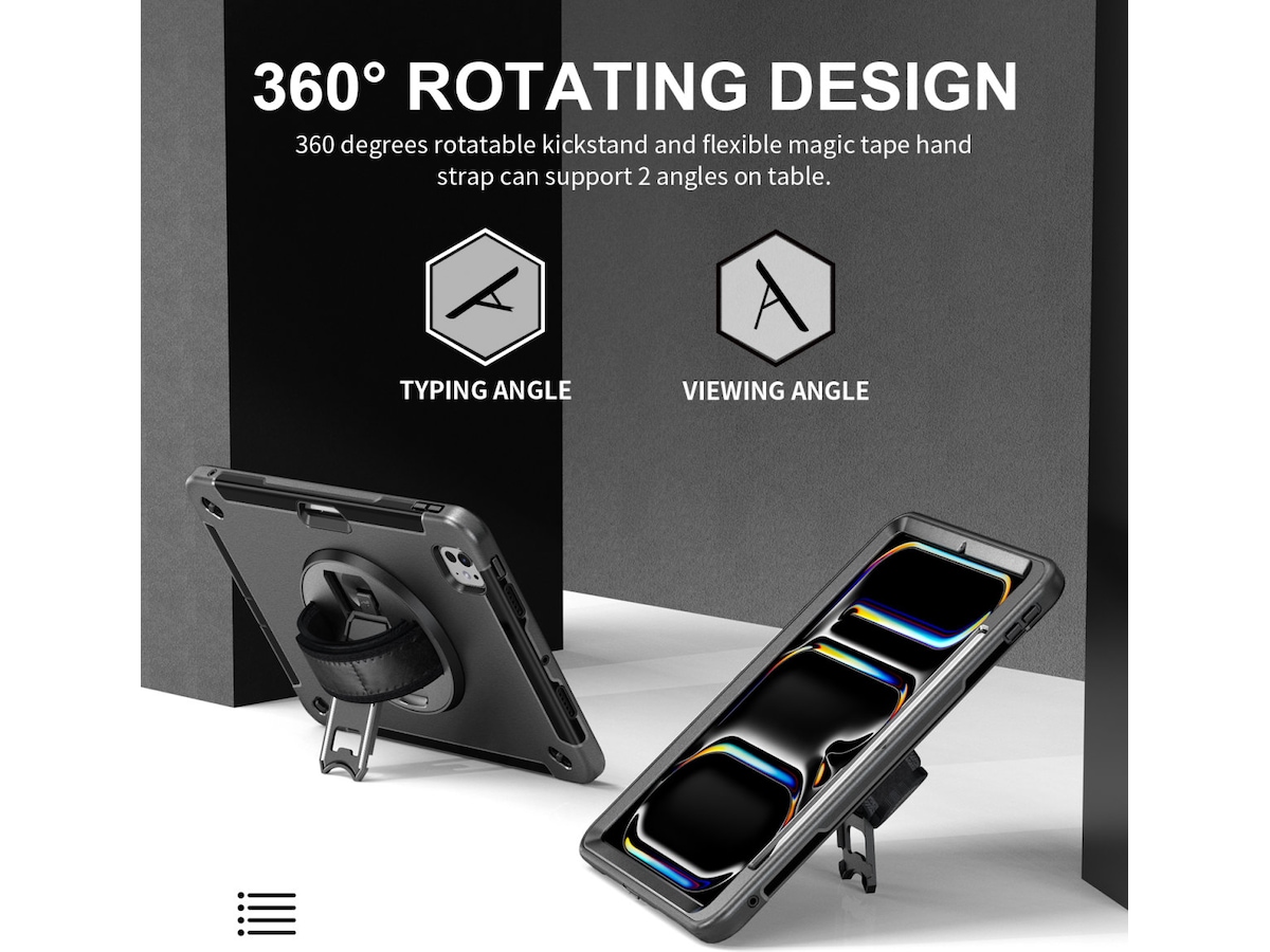 Dette dekselet kombinerer optimal beskyttelse og funksjonalitet i ett! Takket være flerlagskonstruksjonen er dette dekselet ekstremt støtsikkert. Nettbrettet transporteres med håndstroppen og ligger helt trygt i hånden din. I tillegg gir ståfunksjonen en komfortabel og enkel bruk.