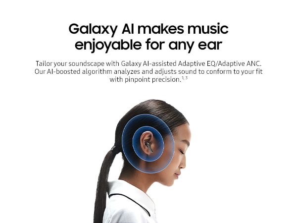 Skreddersy lydbildet ditt med Galaxy AI-assistert Adaptive EQ/Adaptive ANC. Vår AI-forsterkede algoritme analyserer og justerer lyden for å tilpasse seg til din passform med ekstrem presisjon. 1, 3
