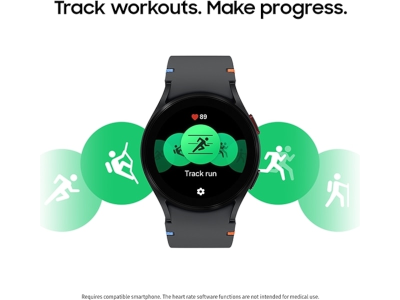 Funksjoner Sleep Coaching, Emergency SOS, Adaptiv treningsveiledning, Musikkavspillingskontroll, Pulssoner, Fjernkontroll for kamera, Verktøy for måling av kroppssammensetning, Fallpåvisning