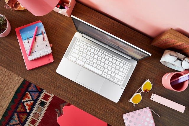 Det beste av arbeid og fritid på ett sted. Med HP Chromebook som har en responsiv Intel®-prosessor, skjerm på 14" (35,6 cm) med mer skjermplass, stereohøyttalere stilt inn av lydeksperter hos B&O og lang batteritid, kan du gjøre ferdig alle oppgavene samtidig som du får sett seriene dine