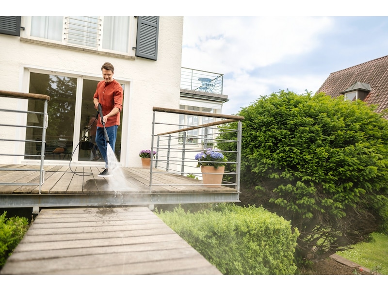 Høytrykksspyleren er utstyrt med en kraftig vannkjølt motor og har utløserpistol med Quick Connect-hurtigkoblingssystem og en 8 meter lang høytrykksslange. Det finnes også en Vario Power-sprøytelanse (VPS) som gjør det enkelt å stille inn ønsket trykk og som gir skånsom behandling av ømfintlige overflater, i tillegg til et spylerør med kraftig roterende stråle for å takle det mest gjenstridige smusset. Det integrerte vannfilteret beskytter pumpen.