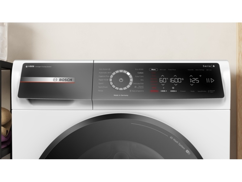 Det er enkelt å slippe manuell dosering og spare vann og vaskemiddel. i-DOS med Detergent Scan sørger for at vaskemaskinen din ikke bruker mer vaskemiddel og tøymykner enn den trenger. Takket være Detergent Scan-funksjonen kan du enkelt skanne vaskemiddel- og tøymyknerflaskene via Home Connect-appen. Den vil da automatisk hente dataene om styrken på vaskemiddelet og hardheten på vannet for å tilpasse innstillingene på maskinen - det kutter forbruket og gir perfekte resultater.