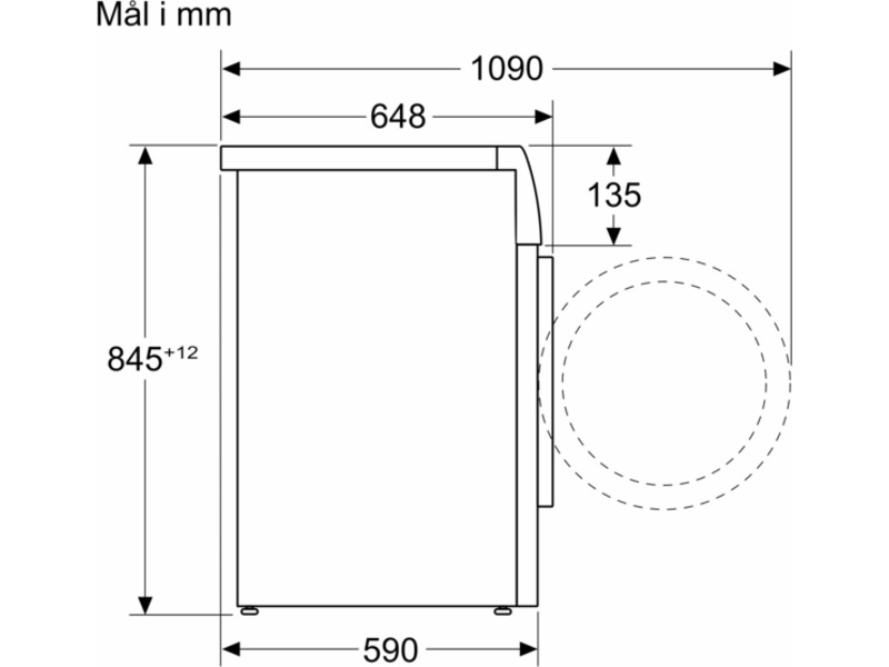 Måldetaljer Dybde med dør åpen 90 grader 109 cm, Dybde uten dør 59 cm