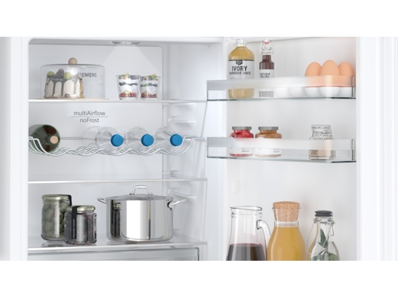 Husker du å plassere meieriproduktene på midterste hylle i kjøleskapet slik at de ikke blir for varme? Med multiAirflow-systemet trenger du ikke tenke på det mer. Systemet fordeler kaldluften jevnt i hele kjøleskapet slik at temperaturen og fuktighetsnivået blir stabilt på alle hyllene. Ikke bry deg om hvor i kjøleskapet det er varmest eller kaldest og hvor du skal plassere ting – maten holder seg lenger uansett.
