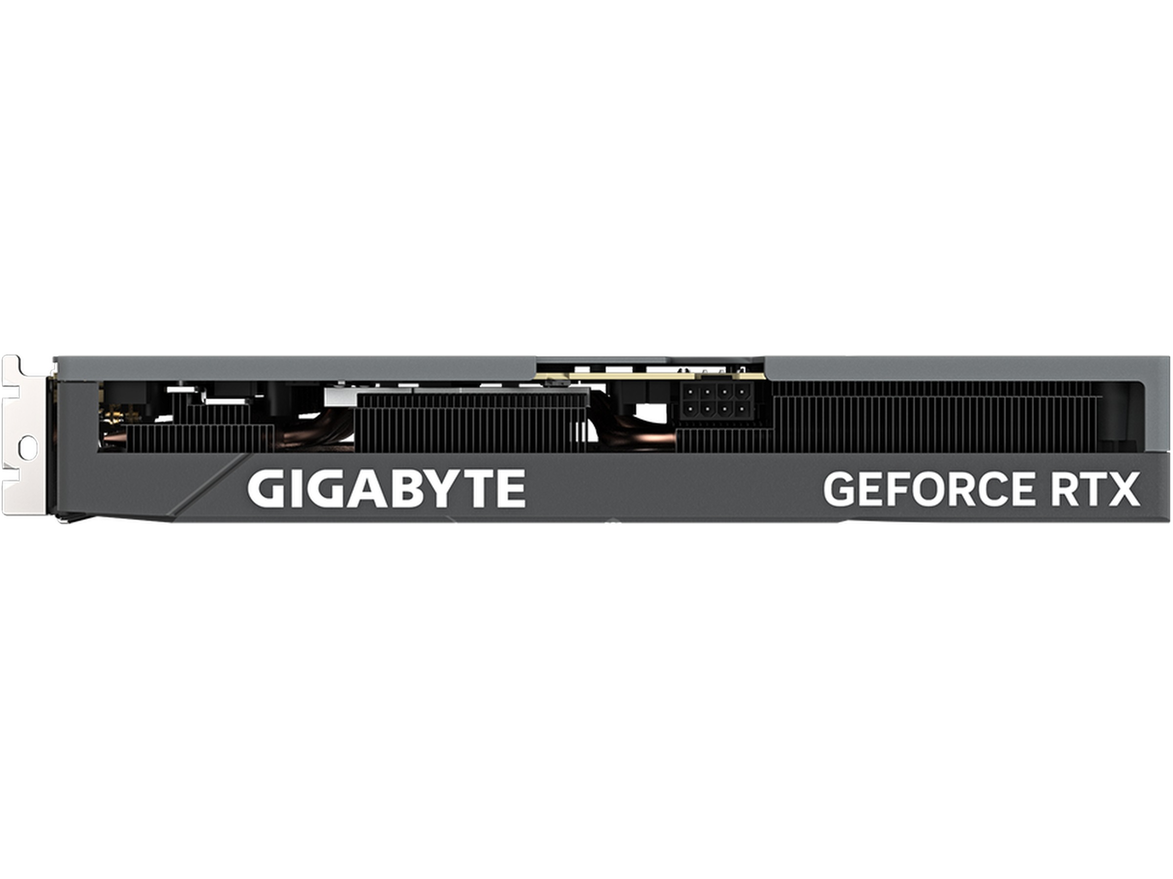 The shape of the pure copper heat pipe maximizes the direct contact area with the GPU. The heat pipe also covers the VRAM through a large metal plate contact to ensure proper cooling.