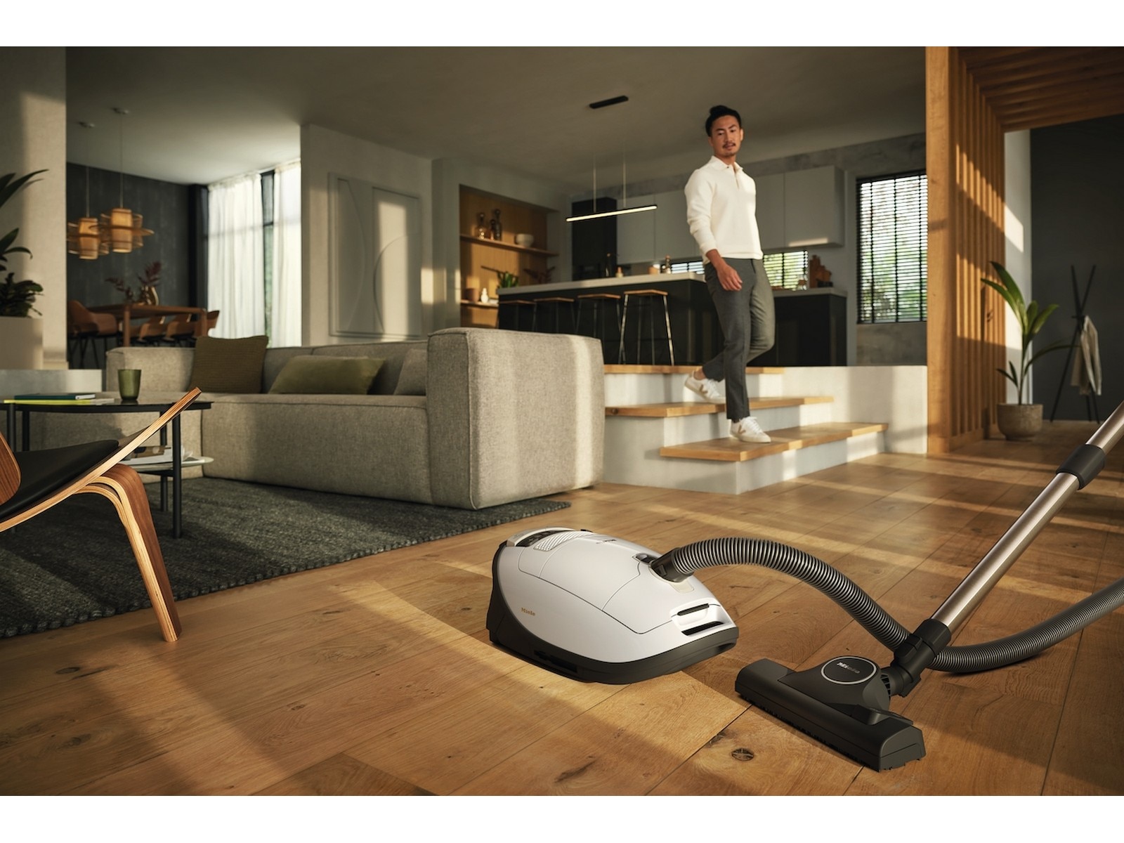 På alle Mieles støvsugere kan man enkelt trekke inn kabelen ved å bruke fottasten – så trenger man ikke bøye seg ned. Seriene Compact C2, Complete C3 og Blizzard CX1 er i tillegg utstyrt med en tipp-funksjon, som gjør det mulig å trekke inn hele kabelen med et tastetrykk.