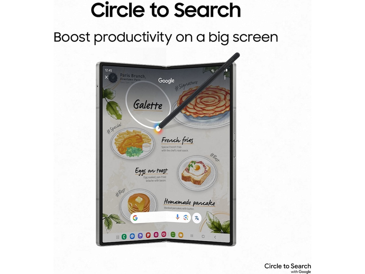 Sirkel for å søke på storskjerm*. Det er en effektiv måte å søke på en smarttelefon – bare lag en sirkel. Øk produktiviteten din på den massive utfellbare skjermen med fingeren eller S Pen.*