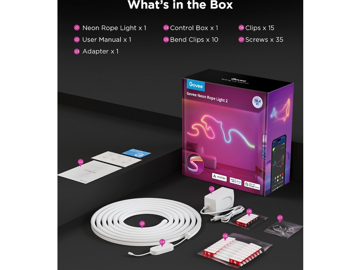 Denne nye generasjonen av Govee neonlys inkluderer tilpassede lyseffekter gjennom Govee Home-appen.