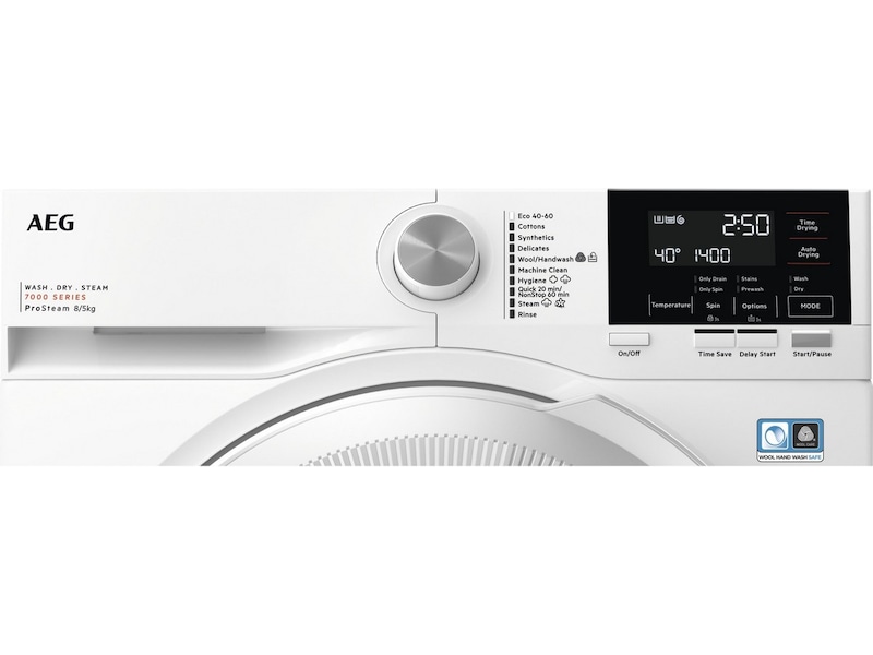 Syntetisk materiale, Delikat, Eco 40-60, Hurtig 20, Antiplettprogram, Trommelrengjøring, Bomull, ProSteam, Hygiene, Damp, Skylle, 60' vask og tørk, Håndvask/ull
