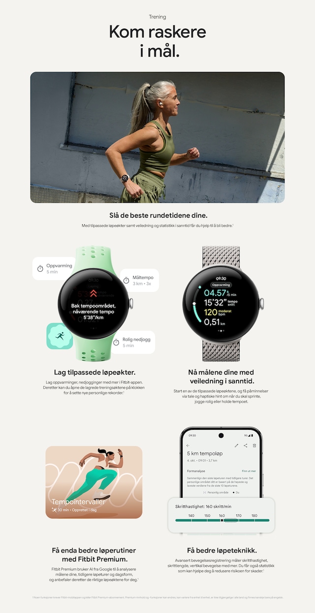 Medisinsk informasjon, Lysstyrke: 2000 nit, åndedrettstrenefunksjon, Fallpåvisning, Nødsituasjon deling, Reell tids løping veiledning, Værinformasjon, Daglige løpe anbefalinger, Anropshåndtering, Sikkerhetssignal, Emergency SOS, Sikkerhetskontroll, Actua skjerm, Active Zone Minutes, Morgensammendrag, Pulssensorering, Løpe treningsbygger |