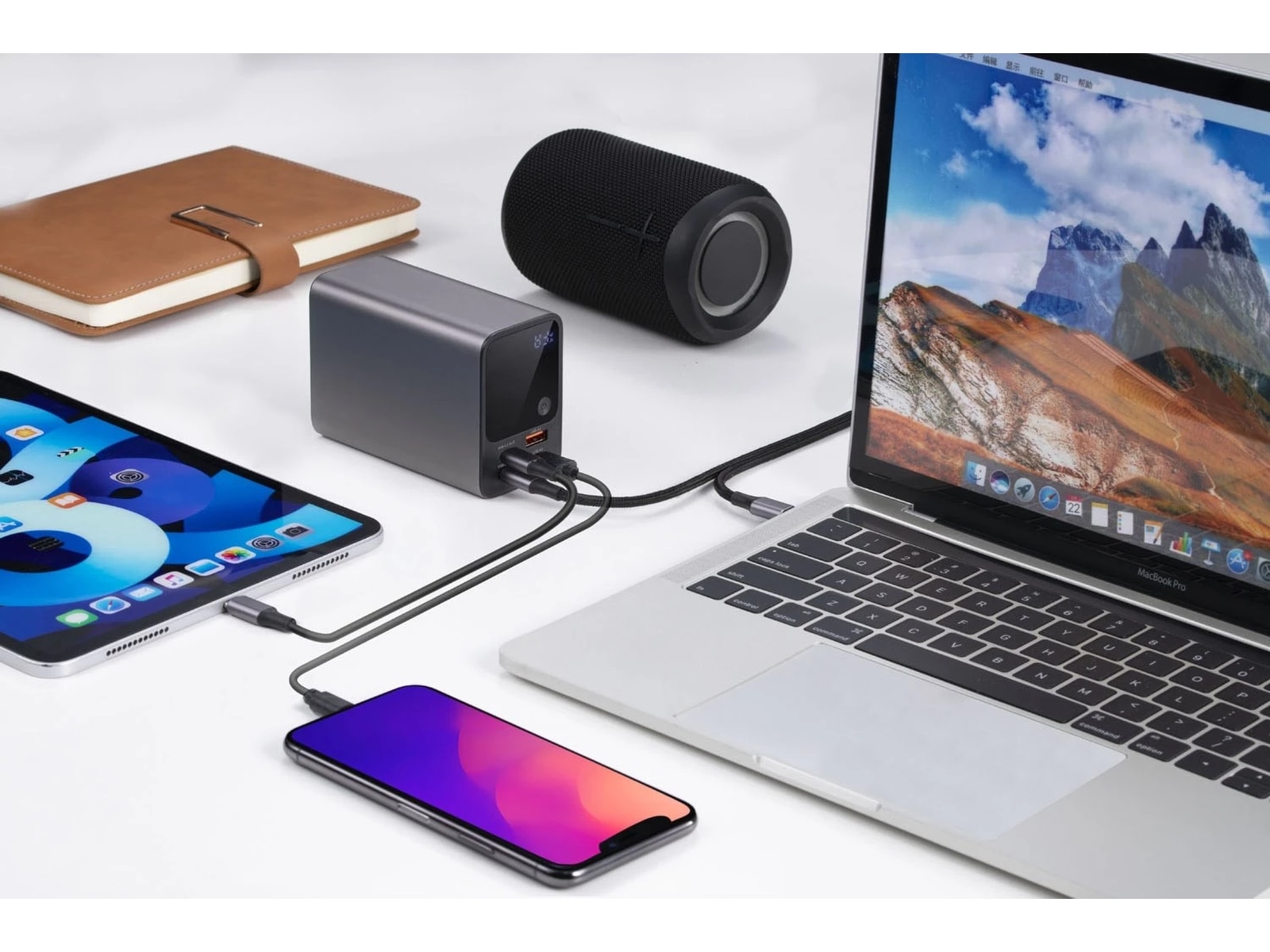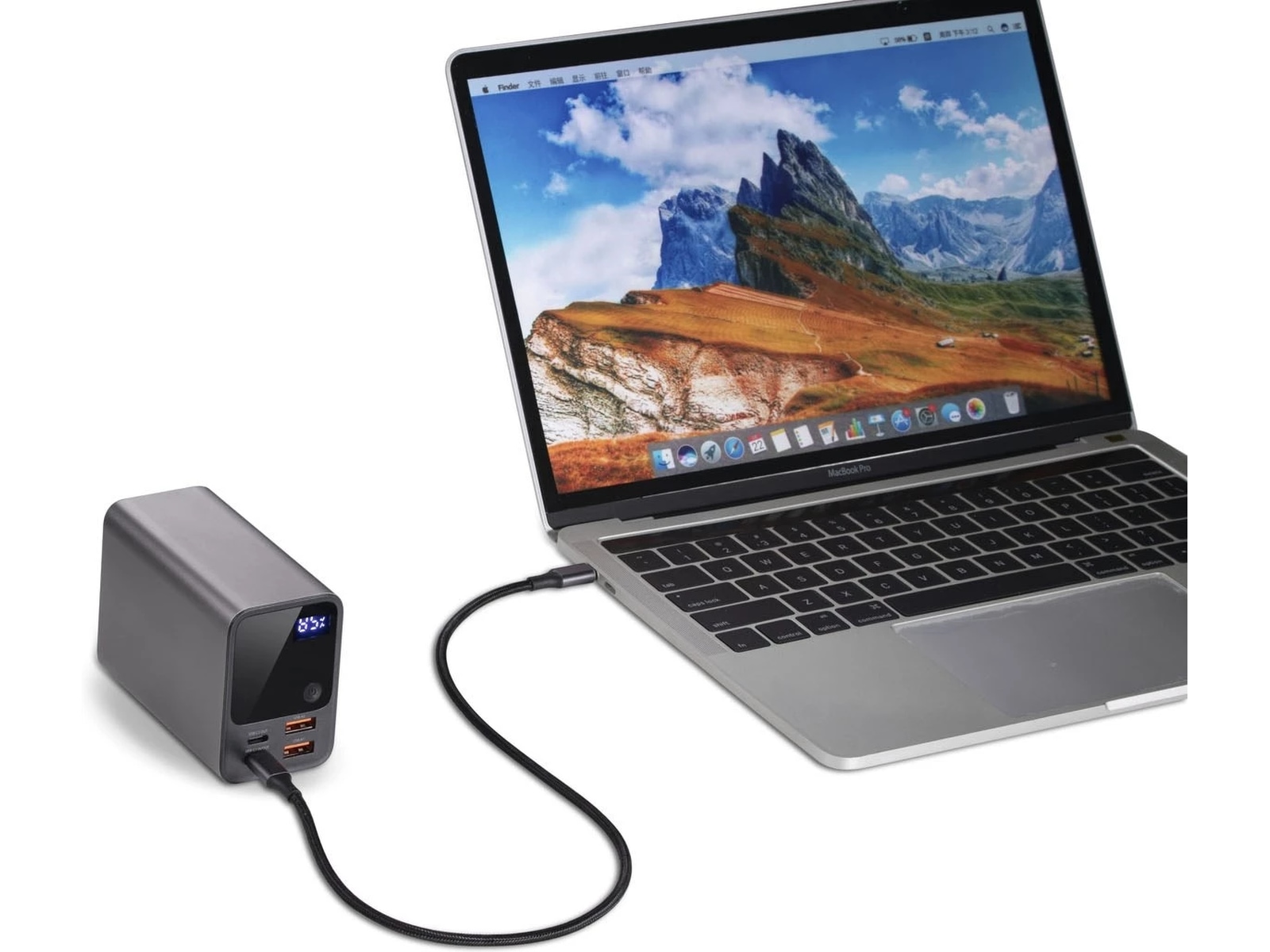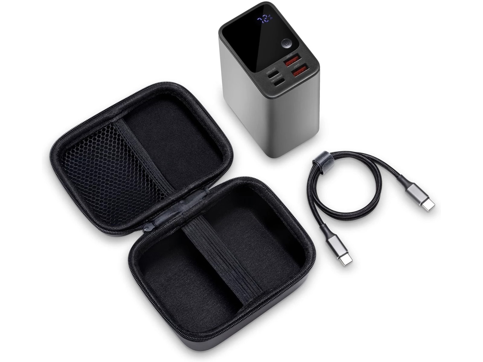 Nødladeren lades raskt med 100W input, og kan lades fra flatt til fullt batteri på bare nitti minutter. En tekstillkledd USB-C-ladekabel følger med i esken, så alt du trenger er en 100W vegglader.