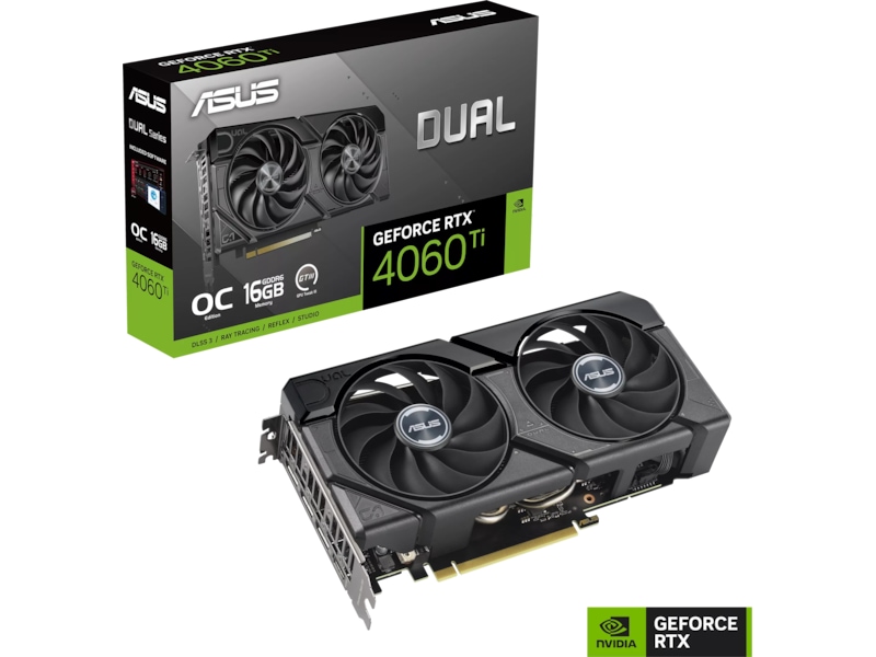 ASUS Dual GeForce RTX 4060 Ti EVO OC ASUS Dual GeForce RTX™ 4060 Ti EVO OC Edition 16GB GDDR6 is designed for broad compatibility, with Axial-tech fan design, 0dB technology, Auto-Extreme Technology, and more.
