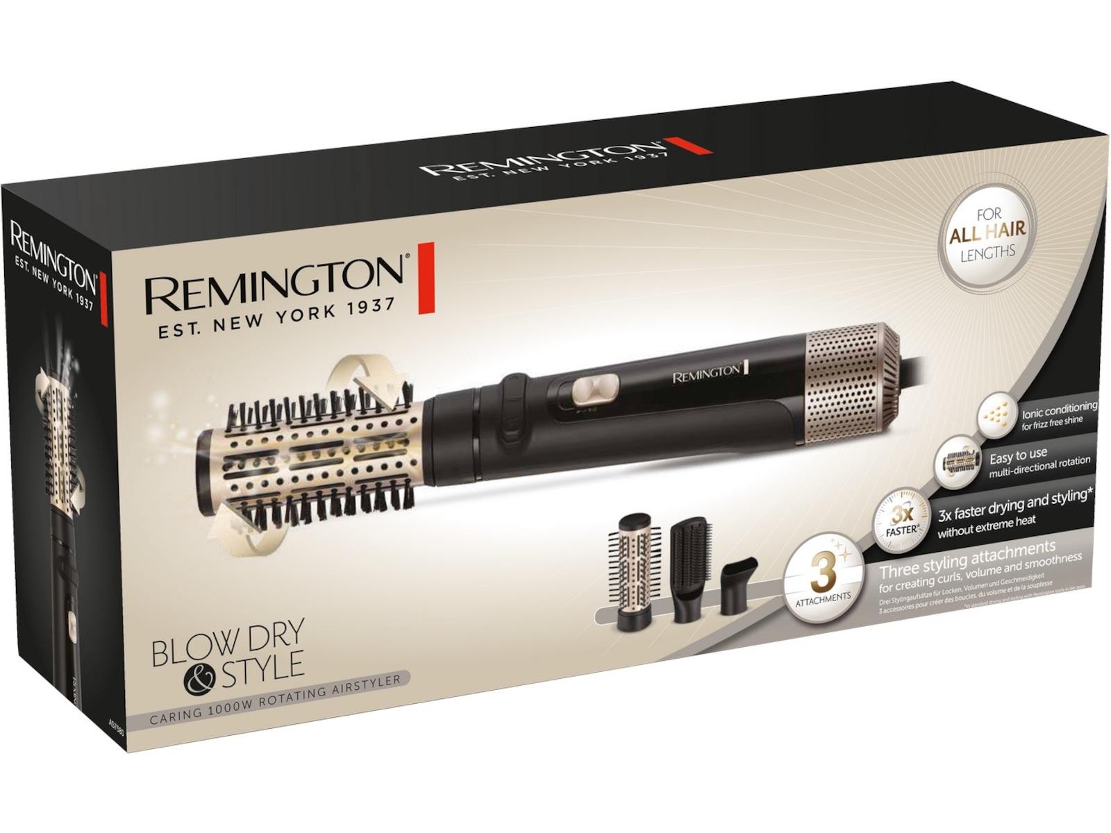 Remington Blow Dry and Style Caring 1000W Rotating Airstyler er din ideelle ettstegs stylingløsning hjemme eller på farten.