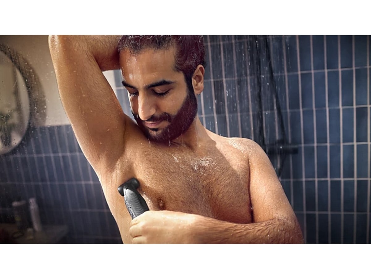 Den våte og tørre kroppsfrisøren er helt vanntett, slik at du kan bruke den i eller utenfor dusjen og rengjøre groomeren enkelt. For best resultat, bruk i tørt hår før du dusjer.