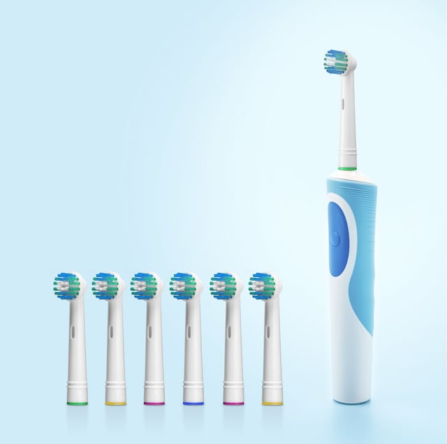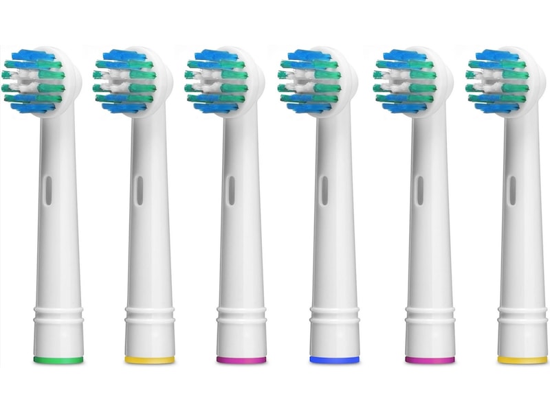 Erstatningsbørstehodet (grønn ring), Reservebørstehode (lilla ring) x 2, Reservebørstehode (gul ring) x 2, Reservebørstehode (blå ring)