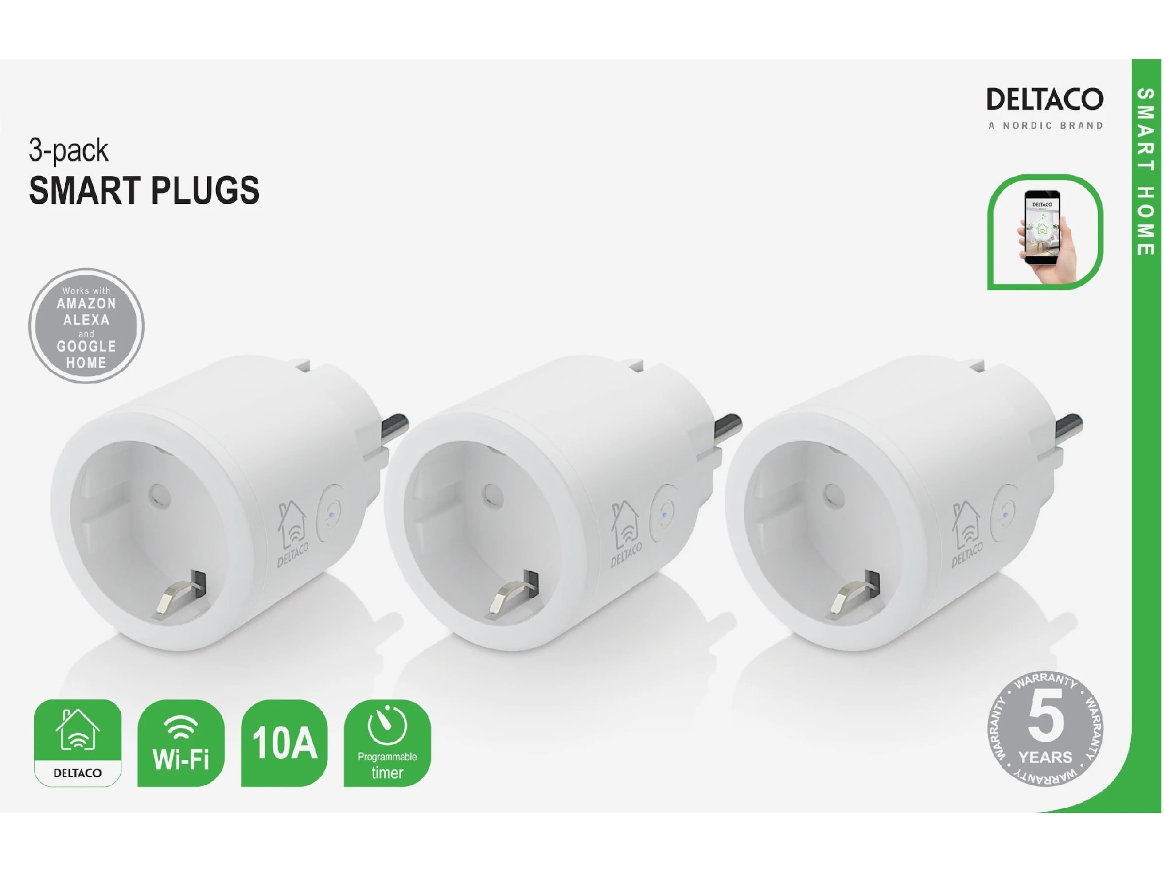 DELTACO Smart Plug, 3pk (hvit)