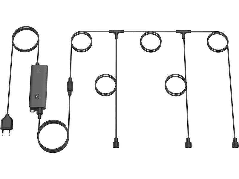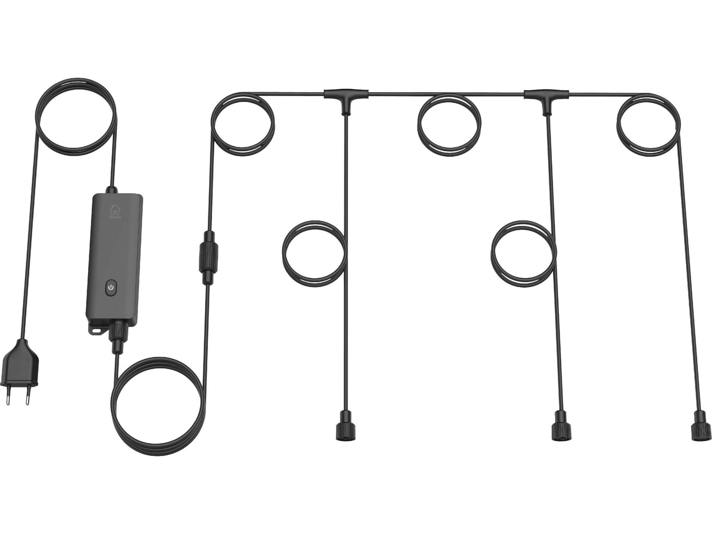 Forlengelseskabel (2 m), Strømadapter (1 m kabel), 2 veggbøyler, Skruer, 2 jordpigger, Fjernkontroll
