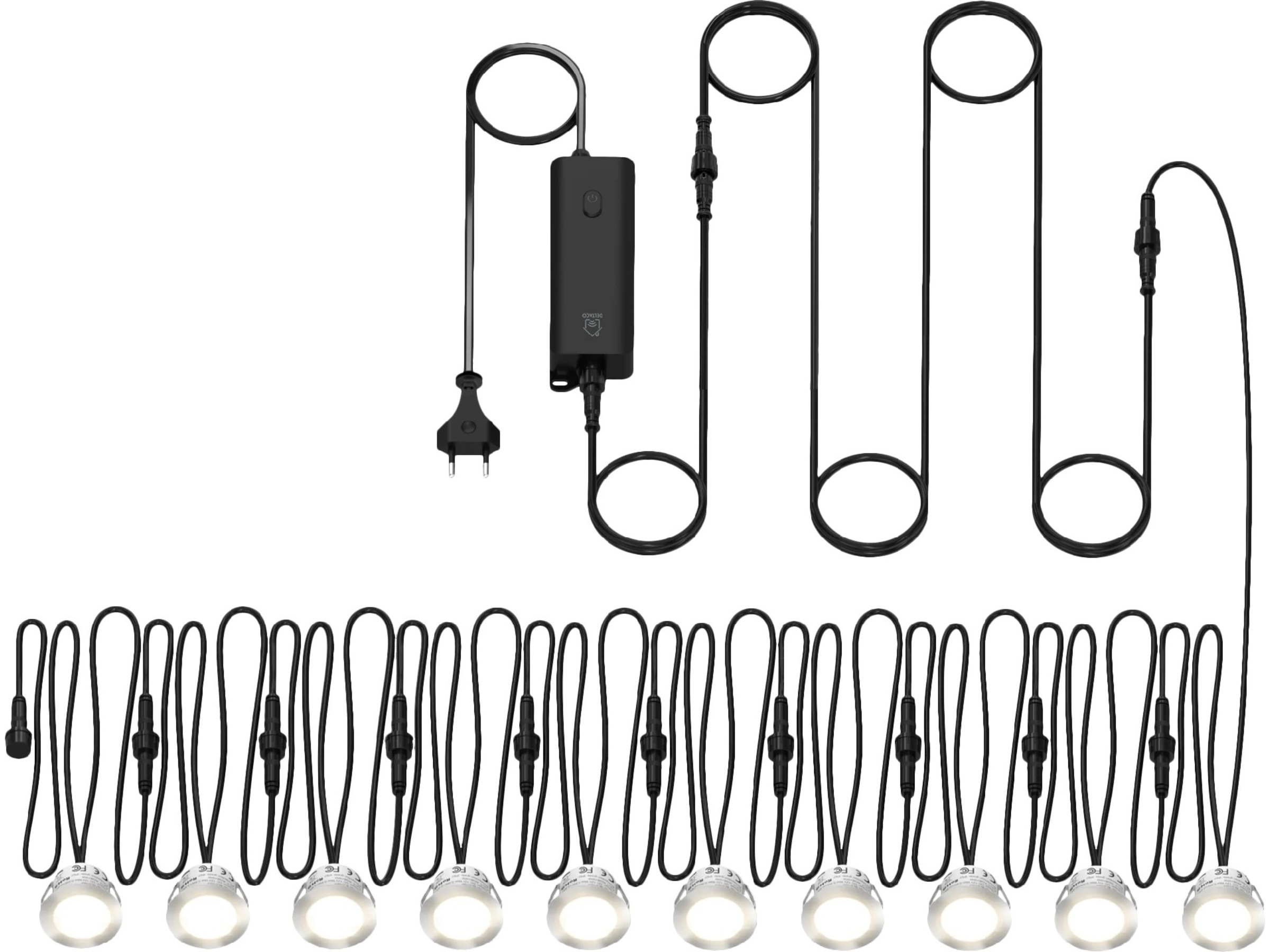 Beskyttelseskopper, Strømadapter (1 m kabel), Forlengelseskabel (2 m)