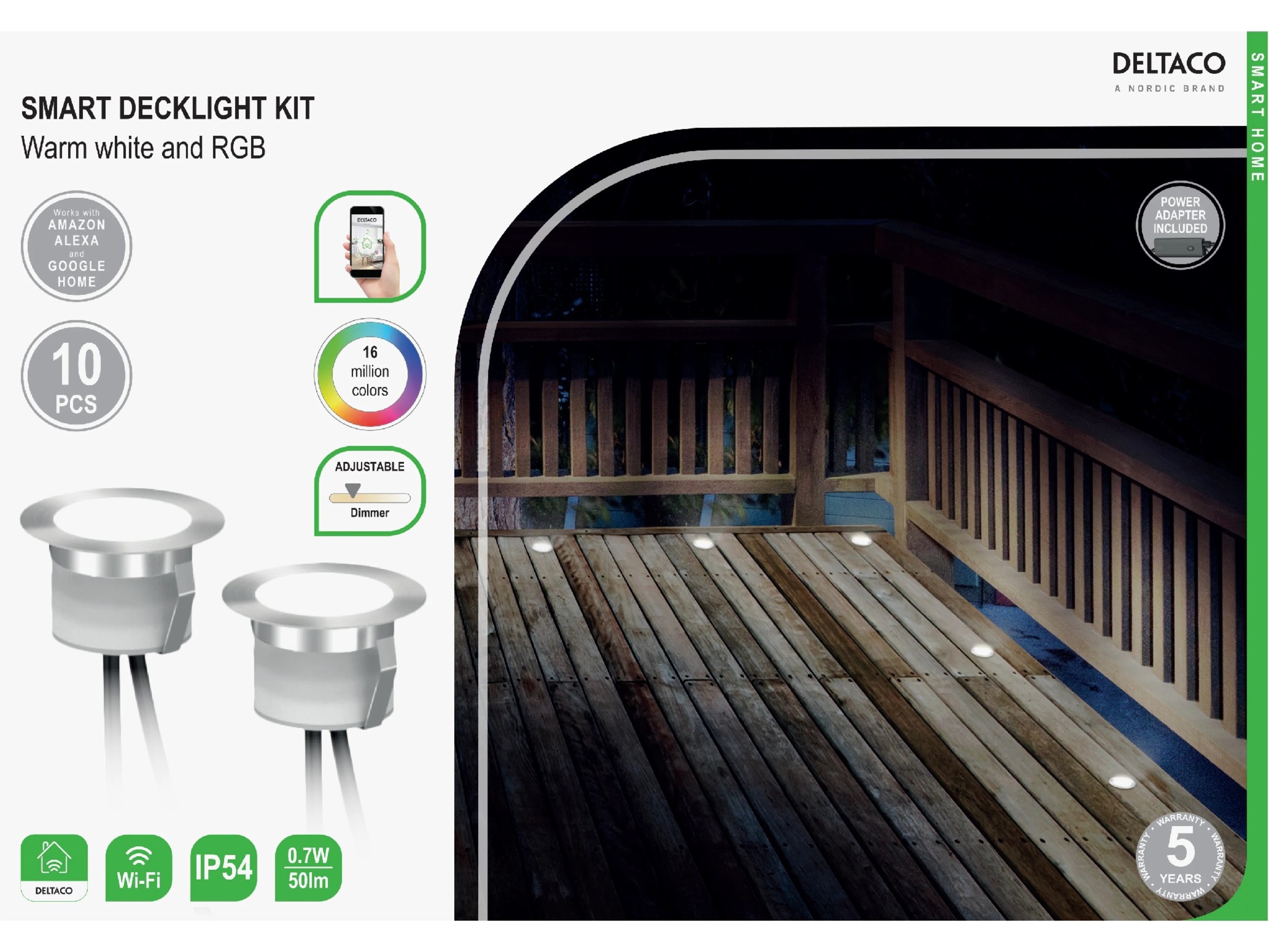 DELTACO Smart Home, lygtesett Varmhvit lys og RGB, sølv Du styrer lysene enkelt via appen vår DELTACO SMART HOME, ved hjelp av Google Assistant eller Alexa Voice Assistant.