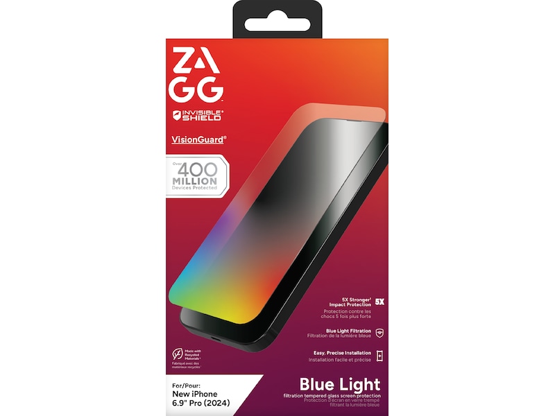 We depend on our digital devices for almost everything. But prolonged exposure to screens and blue light may have negative effects on our health, such as visual fatigue, sleep disruption, and long-term vision problems. ZAGG with Eyesafe® technology has an enhanced Eyesafe® layer that filters 40% of intense blue light (435-440nm).