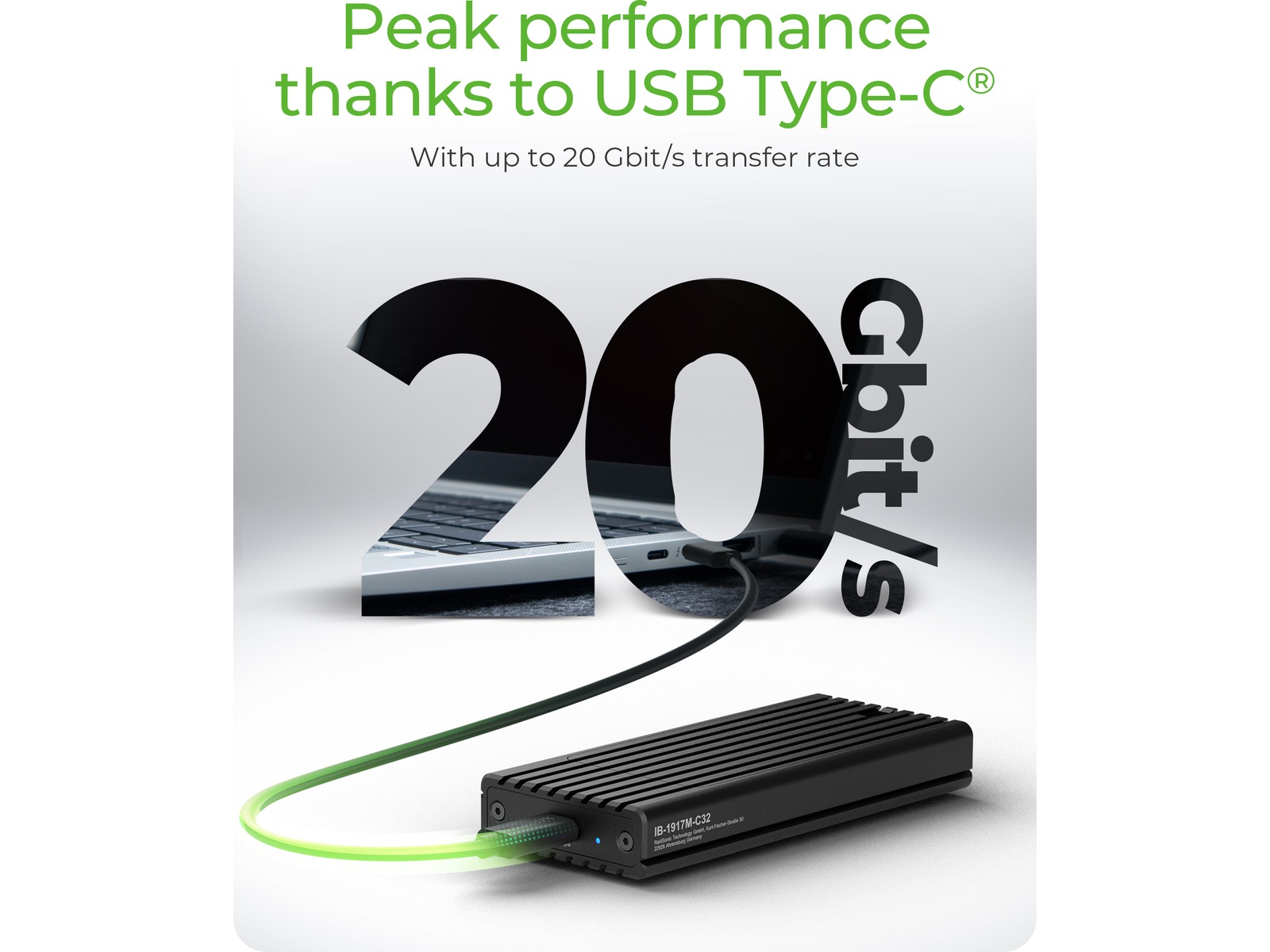 - Peak performance thanks to USB Type-C®: With USB 3.2 Gen 2x2 and the USB Type-C® port, the IB-1917M-C32 offers an impressive data transfer rate of up to 20 Gbit/s, which equals to around 2.5 GB of data per second