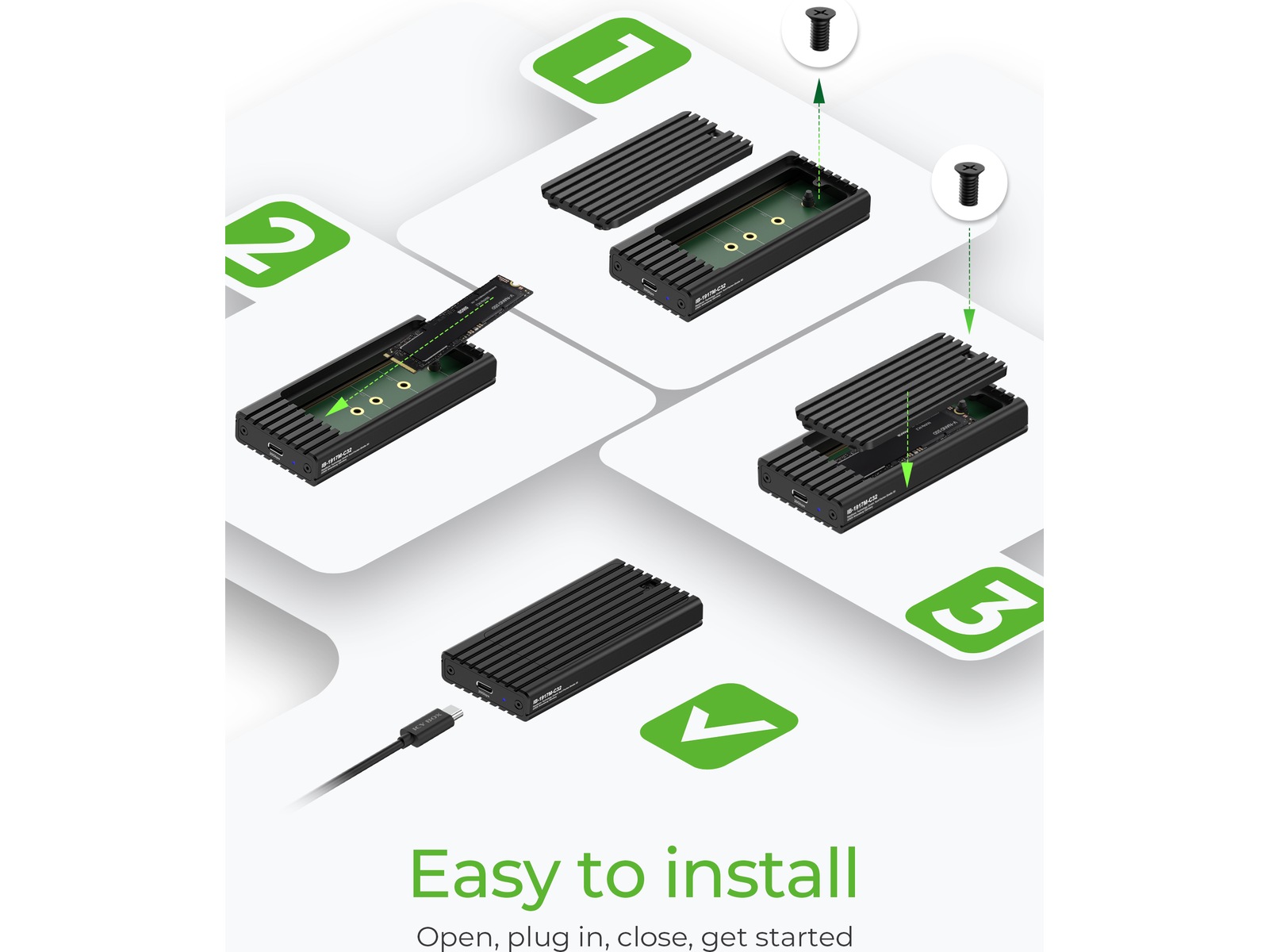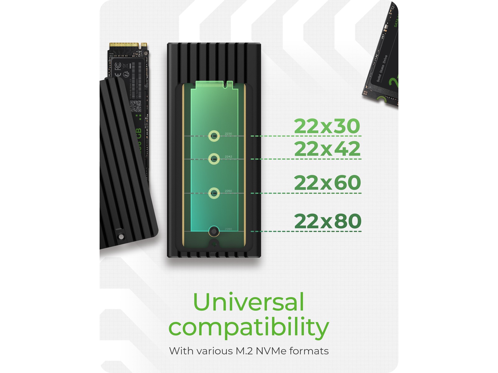 - Universal compatibility: M.2 NVMe SSDs in lengths of 30/42/60 or 80 mm fit into the enclosure. So you can enjoy the instant boost to your workflow despite the size of your selected drive