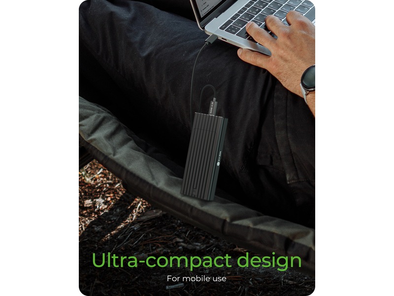 - Easy to install: The installation of the SSD is easy. After loosening the screws on the lid of the enclosure, the SSD can be installed without screws or tools. Replace the cover and get started