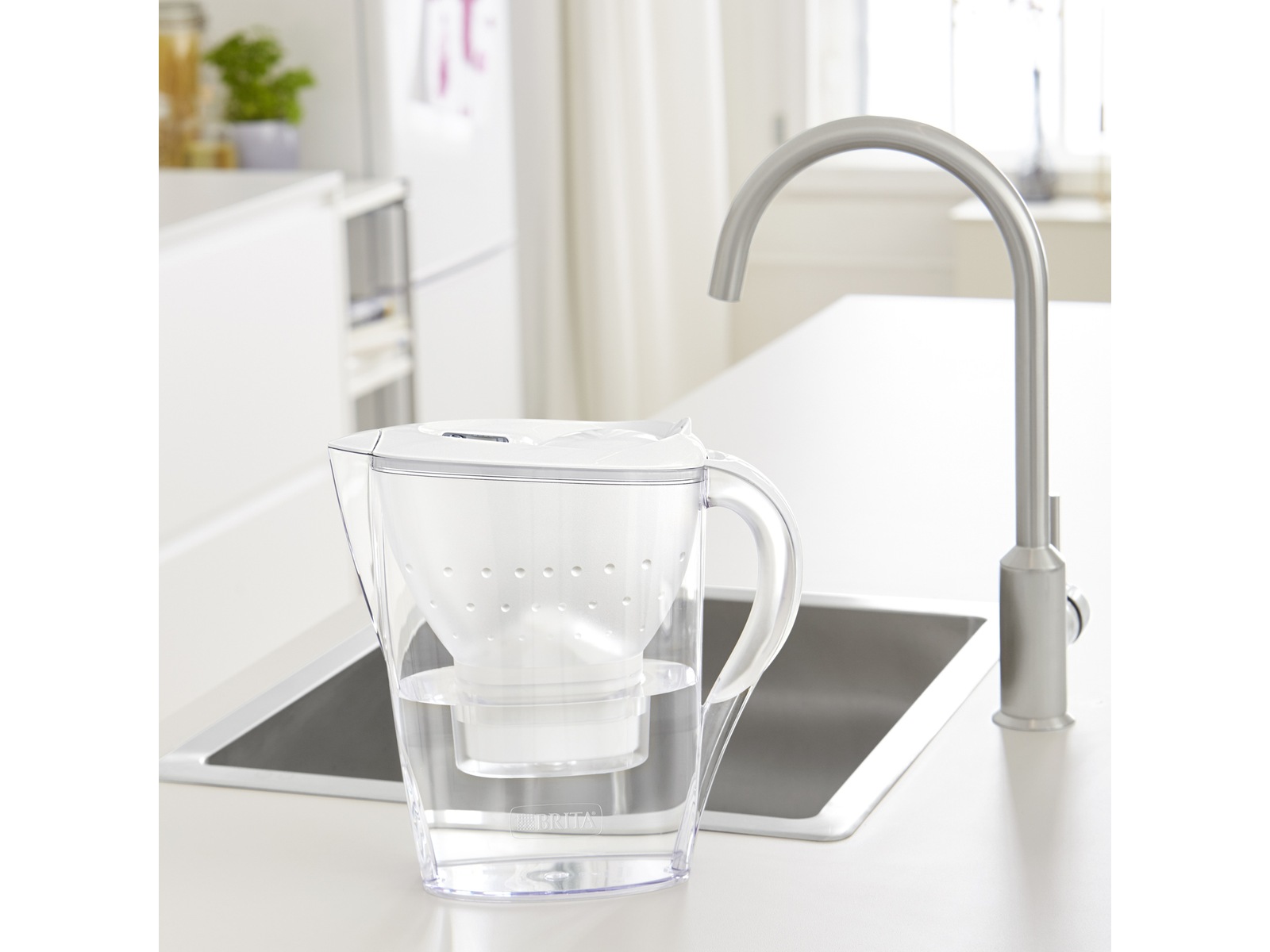 De innovativa mikrokolpärlorna i Brita Marella Memo Maxtra+ -vattenfilterkannan filtrerar klor och organiska föroreningar ännu mer effektivt, vilket gör ditt vatten extra fräscht. Jonbytarpärlor låser in t.ex. koppar och kalk, vilket förlänger livslängden på dina hushållsapparater.