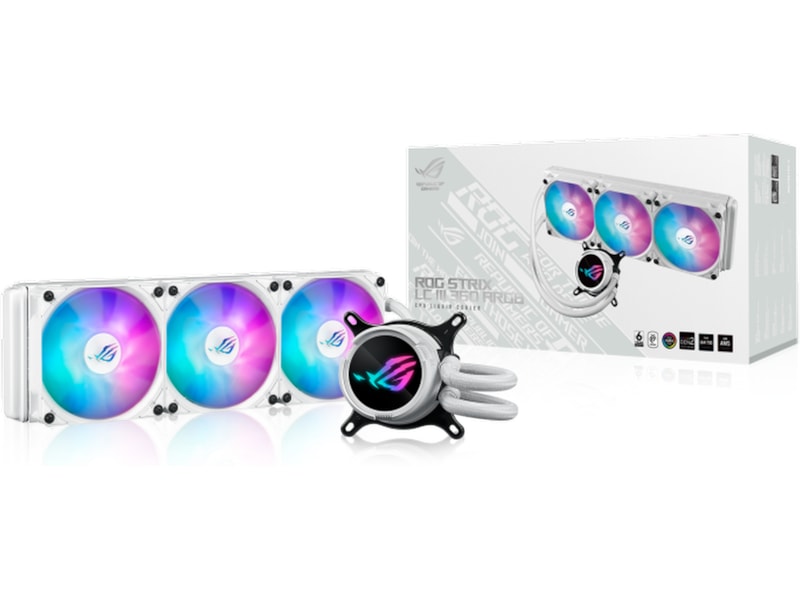 ROG Strix LC III 360 ARGB White Edition har en ny og mer stillegående Asetek Gen7 V2-pumpe med oppdatert kaldplateteknologi som kan håndtere ytterligere 100 watts kjøling og temperaturer opptil 0,5 ° C lavere*. Hev kjøleeffektivitet for CPU-en for uovertruffen stabilitet under intens arbeidsbelastning.