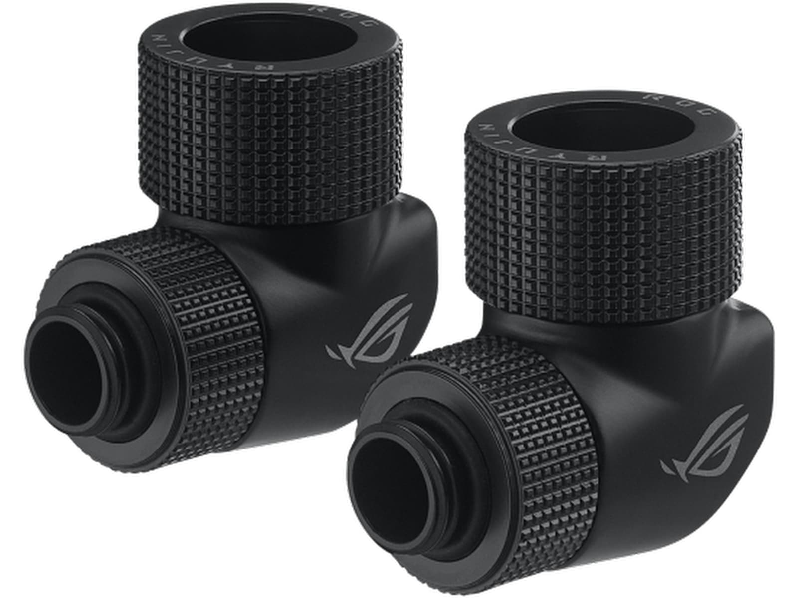 Pakkeinnhold 2 x 16mm hard-rørs fittings G1/4, 1 x AMD-monteringssett, 1 x Intel-monteringssett, ROG-kabelordner, 2 x 90° roterende gjengeadapter G1/4