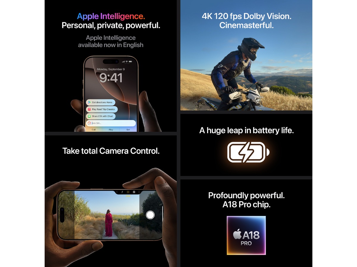 iPhone 16 Pro Max. Med praktfull design i titan. Kamerakontroll. Dolby Vision i 4K med 120 bps. Og A18 Pro-chipen.