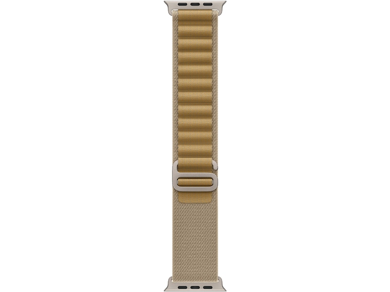 Denne remmen er karbonnøytral. Målt i vekt inneholder Alpine Loop 43 prosent resirkulert materiale, det brukes 100 prosent ren energi i produksjonen, og 50 prosent eller mer av alle karbonnøytrale Apple Watch-produkter fra Apple fraktes uten bruk av fly.