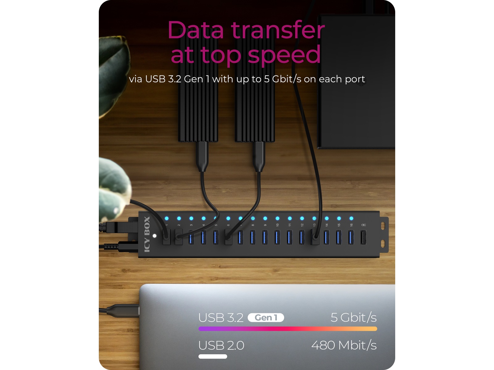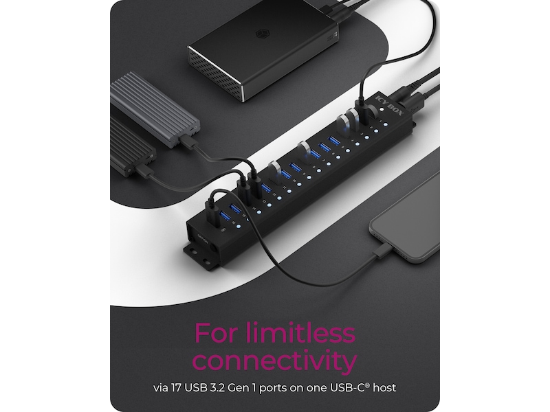 ICY BOX17-Port Hub with USB 3.2 Gen 1 Type-A interface