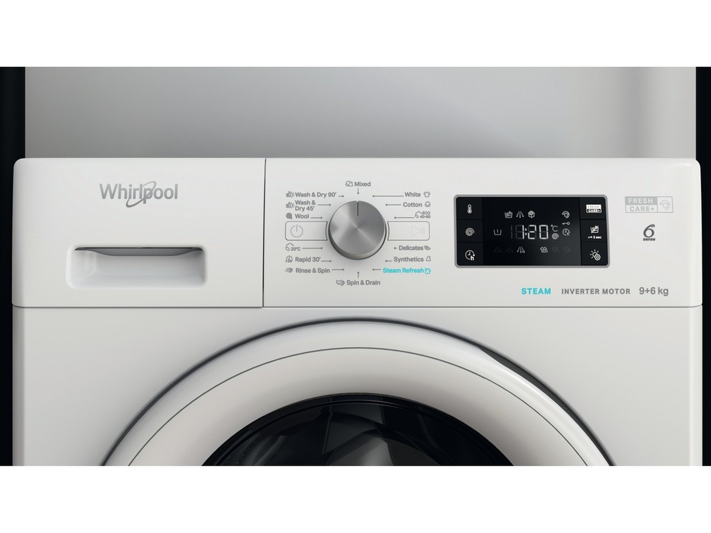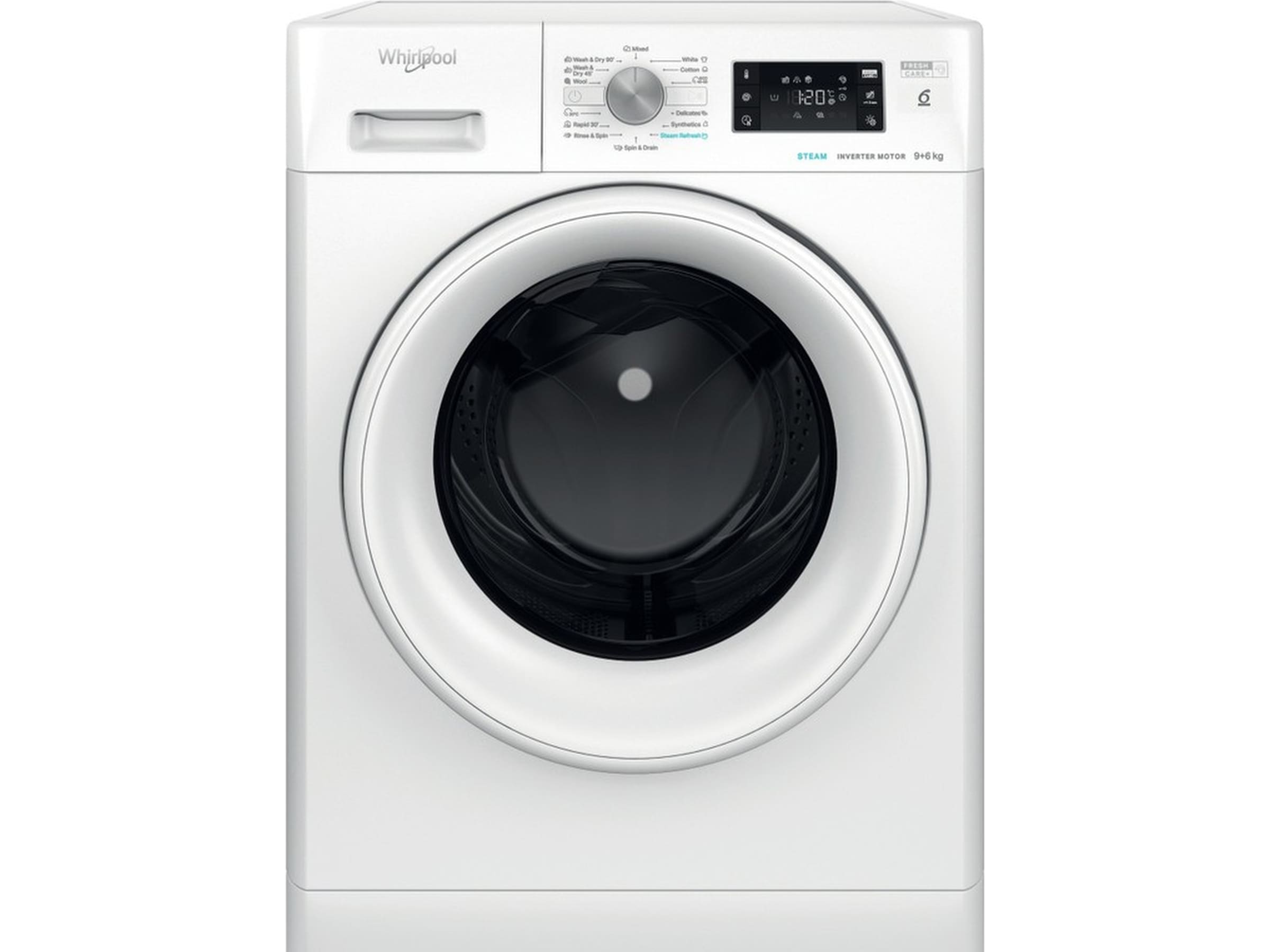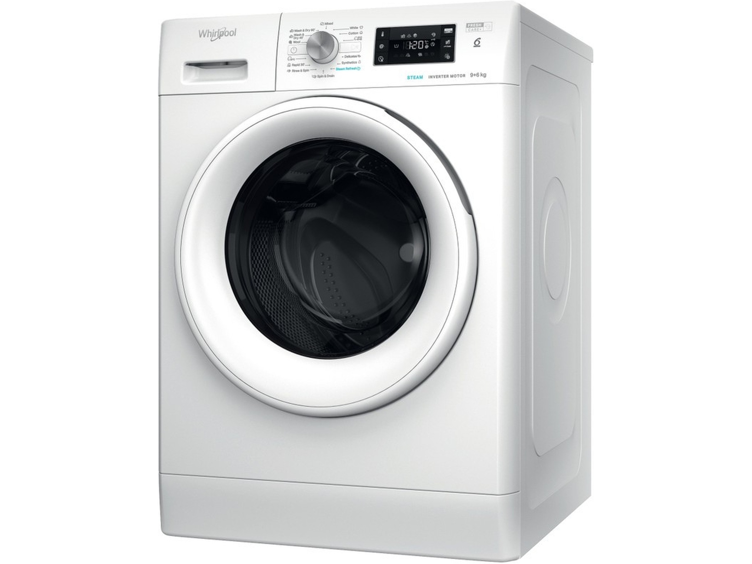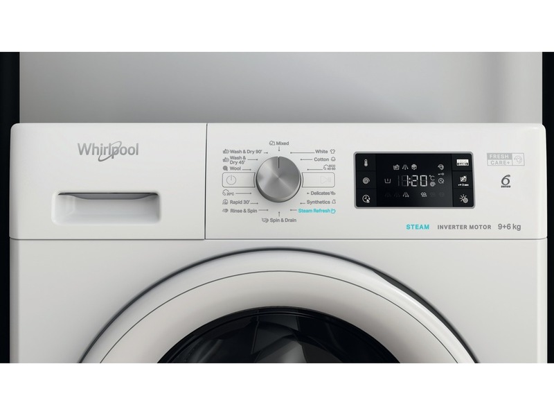 All plassen du trenger. Med sin enestående 9 kg vask og 6 kg tørrkapasitet gir denne Whirlpool vaskemaskinen og tørketrommelen all plassen du trenger til tøyet.