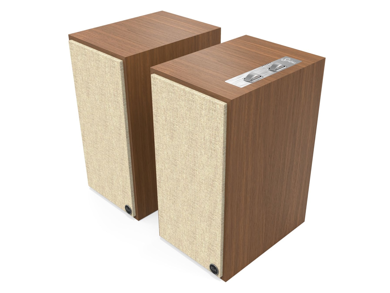 Håndlaget med overflater i ekte tre, kontroller i førsteklasses metall, tøygitter og korkputer – Klipsch Sevens Powered Monitored er kvalitetsdesignet for å imponere.