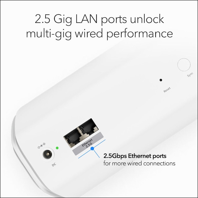 - Koble til datamaskiner, spillkonsoller, strømmespillere og mer med 2 x 2,5 Gbps Ethernet-porter