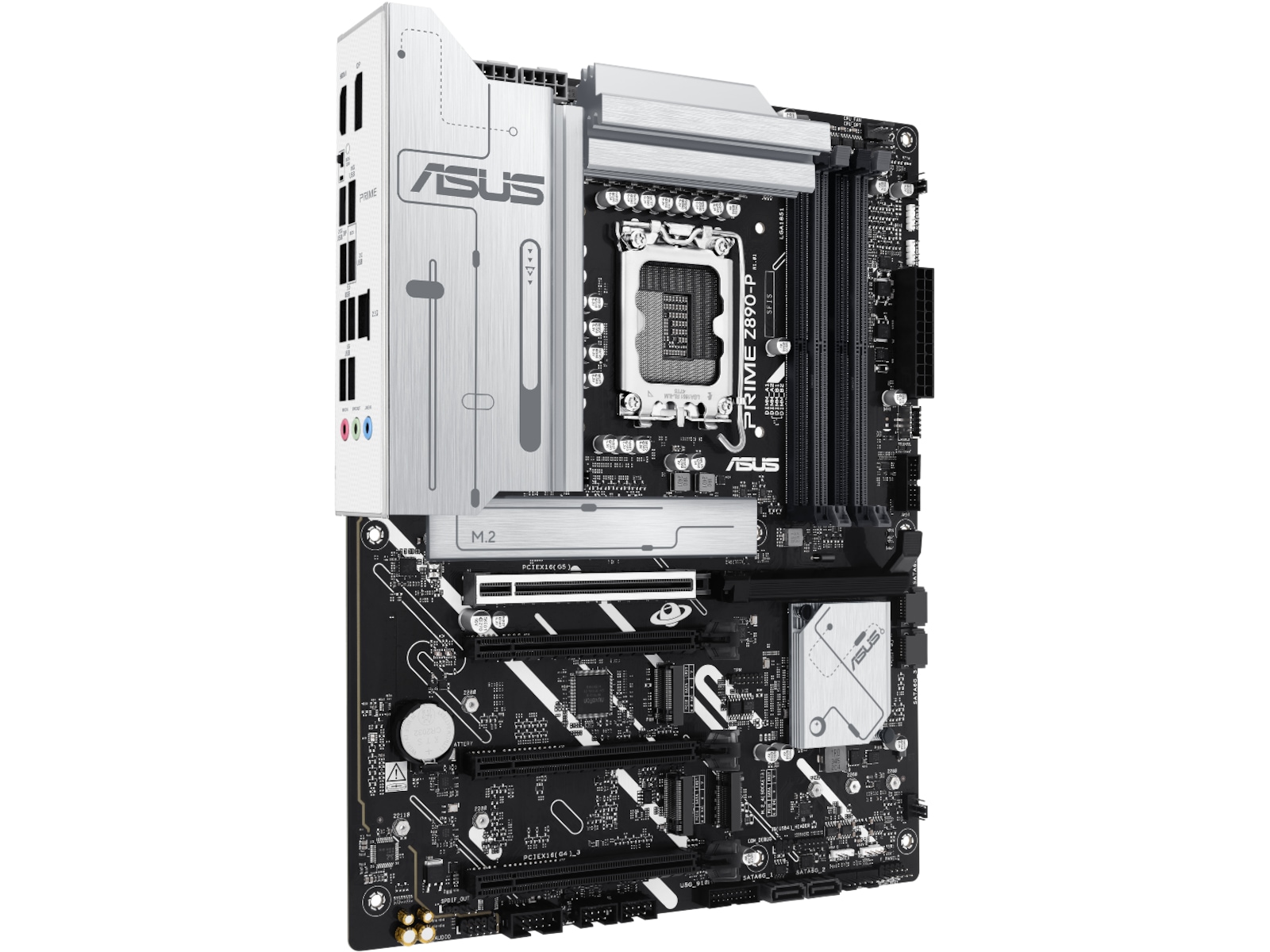 PRIME Z890-P-hovedkortet er konstruert med flere innebygde kjøleribber og en rekke hybride viftehoder for å sikre at riggen din holder seg kjølig og stabil under intens arbeidsbelastning.