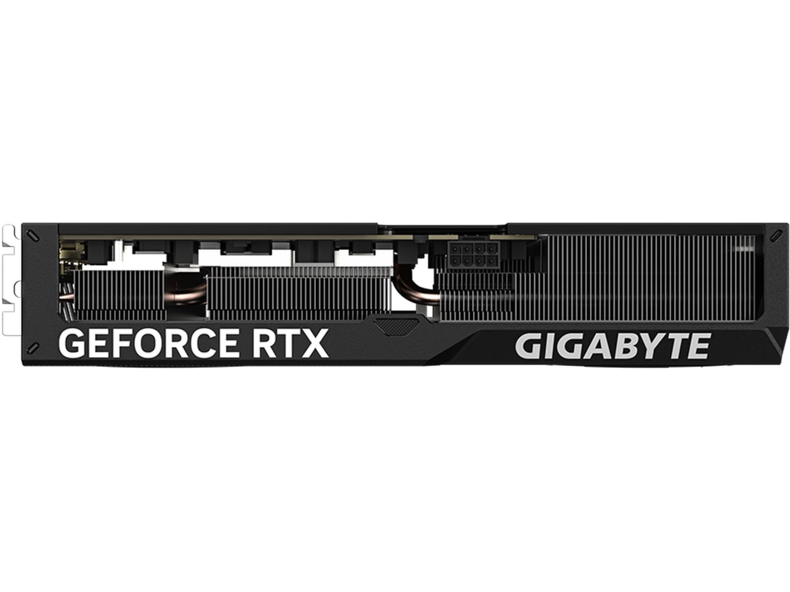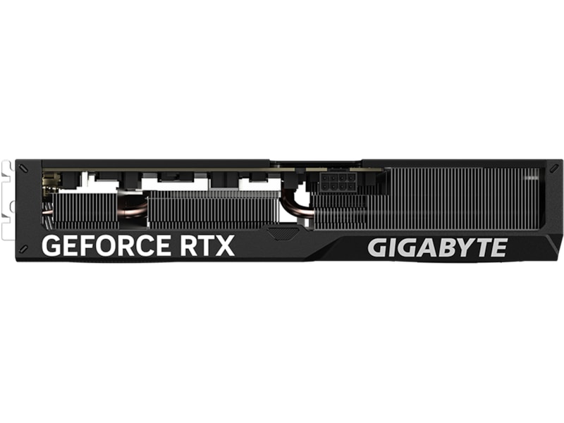 The shape of the copper heat pipe maximizes the direct contact area with the GPU. The heat pipe also covers the VRAM through a large metal plate contact to ensure proper cooling.