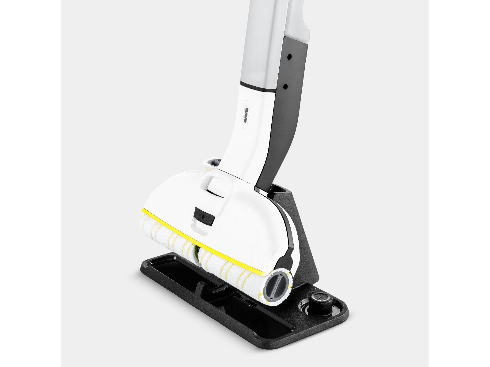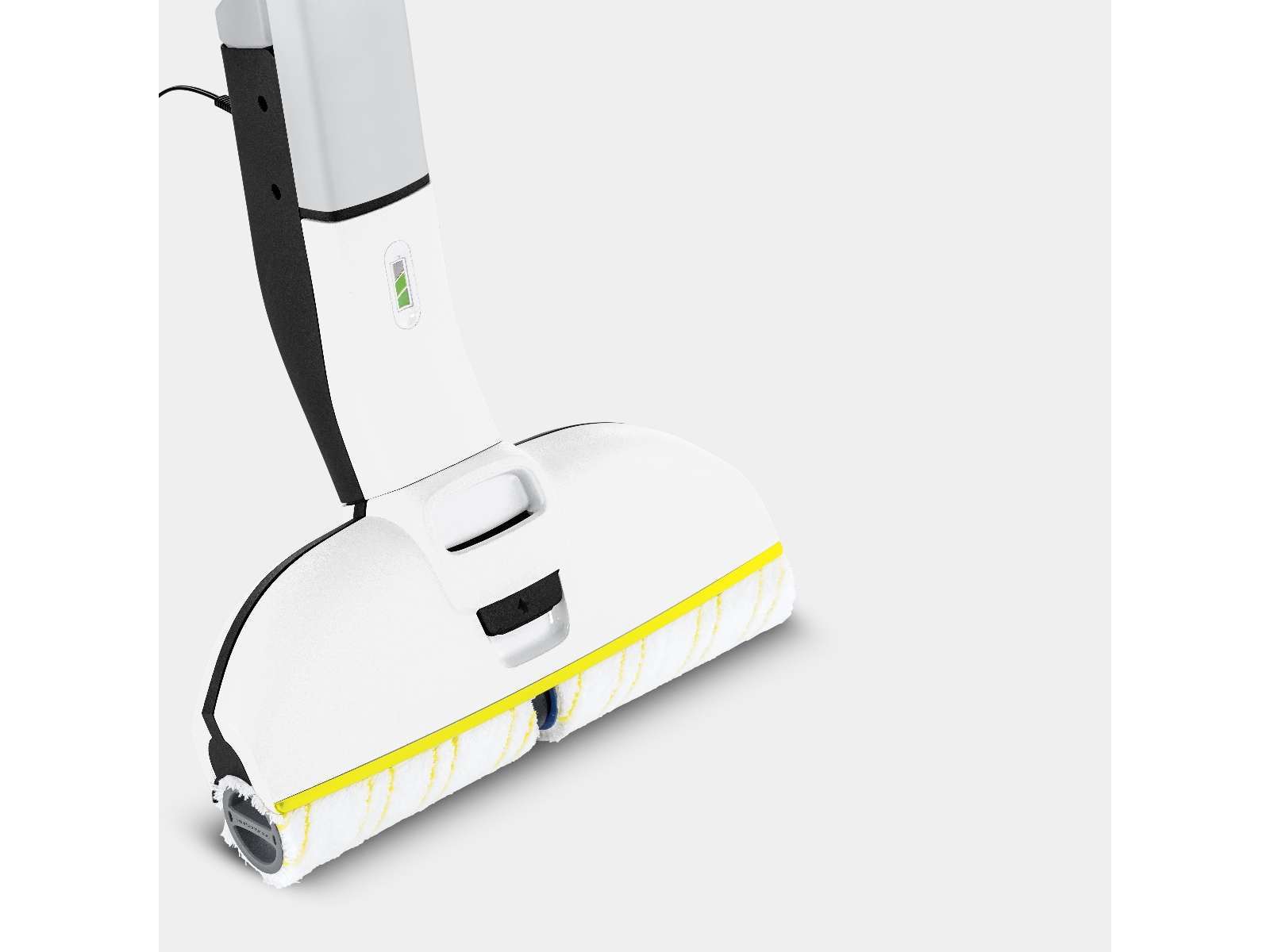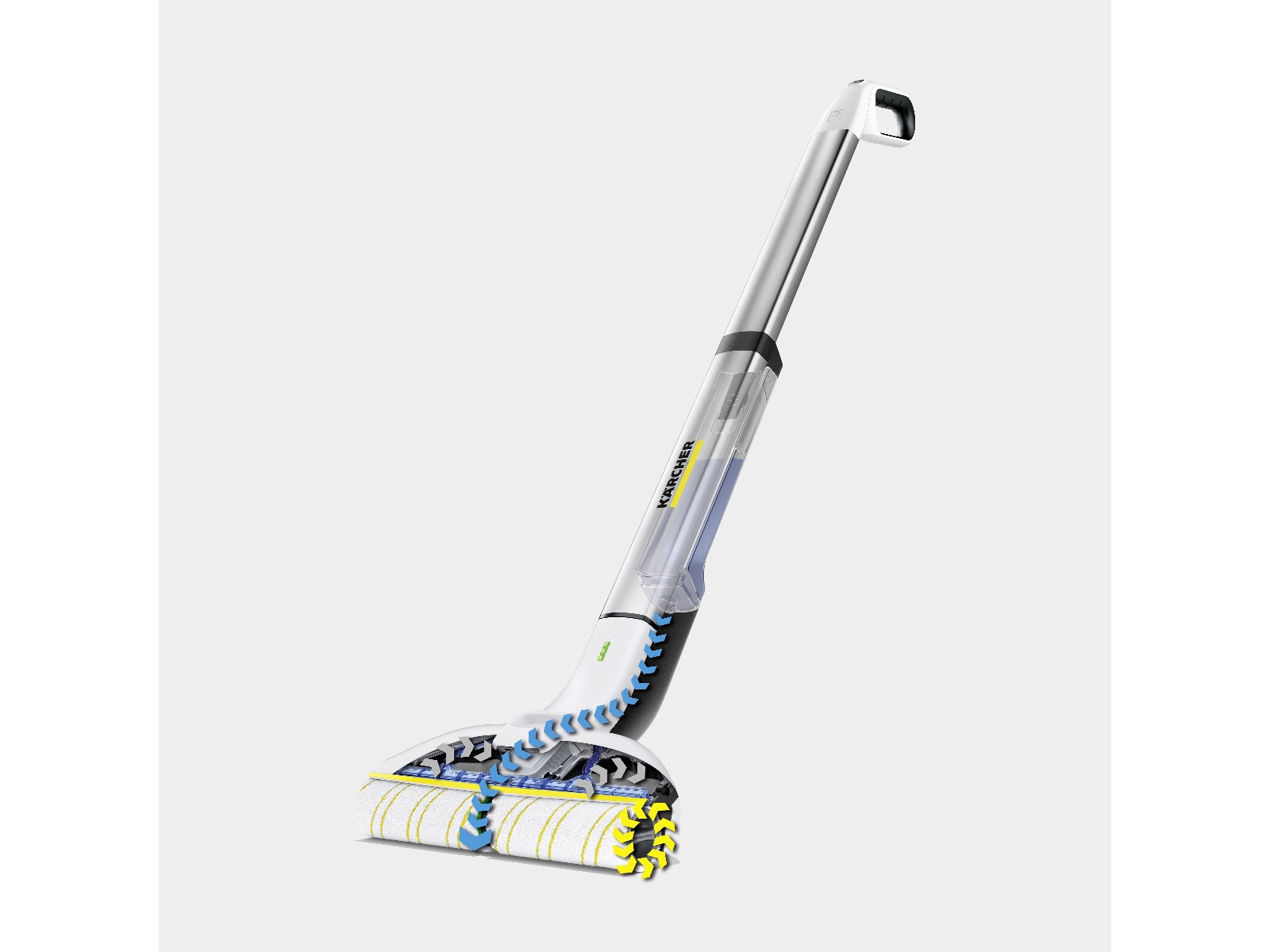 Gulvvaskeren gjør gulvene dine 20 % renere enn rengjøring med vanlig mopp. De roterende valsene fuktes kontinuerlig med rent vann, mens skitt og smuss føres inn i skittenvannstanken. Takket være den slanke designen kan EWM 2 enkelt nå under møbler og sparer samtidig lagringsplass. Den har også et dreieledd som gjør det enkelt å rengjøre hjørner og kanter. Tørketiden for gulvet er ca. 2 minutter, noe som gjør den egnet for alle typer harde gulv, enten det er tre, stein eller plast. Det kraftige litium-ion-batteriet gir maksimal bevegelsesfrihet, siden rengjøringen ikke lenger er avhengig av en stikkontakt. Den intuitive LED-skjermen gir kontinuerlig informasjon om batterinivået. Batteriet har en driftstid på opptil 20 minutter, noe som er tilstrekkelig for å rengjøre et område på ca. 60 m².