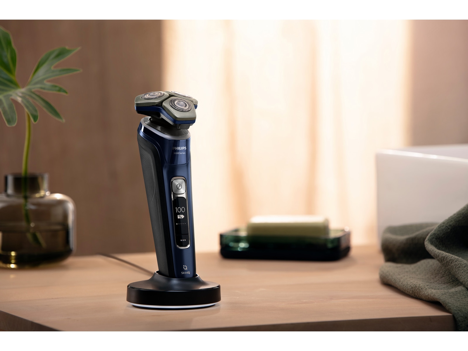 Den første Philips-barbermaskinen med et dynamisk OLED-display avslører alle barbermaskinfunksjoner og varsler med skarpe, flytende animasjoner. Det intuitive grensesnittet omfatter veiledning fra SkinIQ, batteristatus, rengjøringsråd med mer.