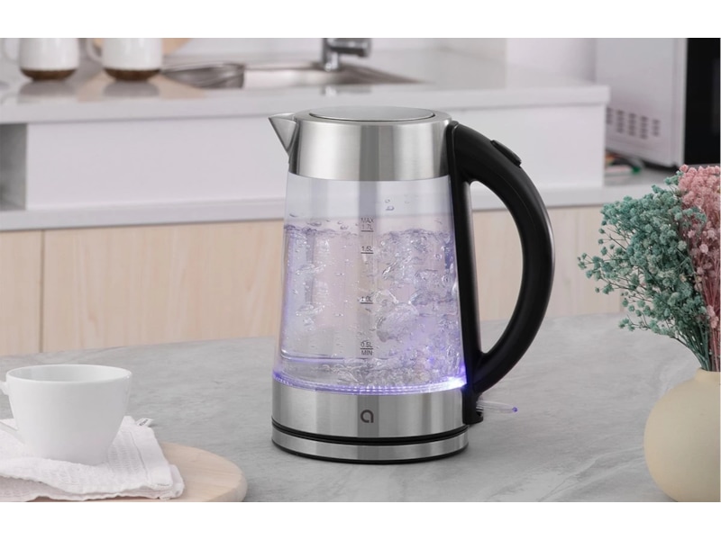 WRK-G2200 er en vannkoker på 2200 W med en kapasitet på 1,7 liter, noe som gjør den rask og praktisk til hverdagsbruk. Den gjennomsiktige glassbeholderen gjør det enkelt å holde øye med vannivået, og den dobbeltveggede konstruksjonen reduserer risikoen for brannskader. Vannkokeren er også utstyrt med sikkerhetsfunksjoner som beskytter mot tørrkoking og overoppheting for tryggere bruk.