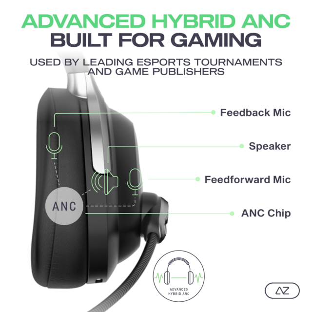 AceZone-headsettet har en bransjeledende og eksklusiv teknologi i Advanced Hybrid ANC utviklet for konkurransespill. Denne teknologien gir spillere den raskeste responstiden i spillet, mens den tilbyr best i klassen støydemping sammenlignet med konkurrentene.