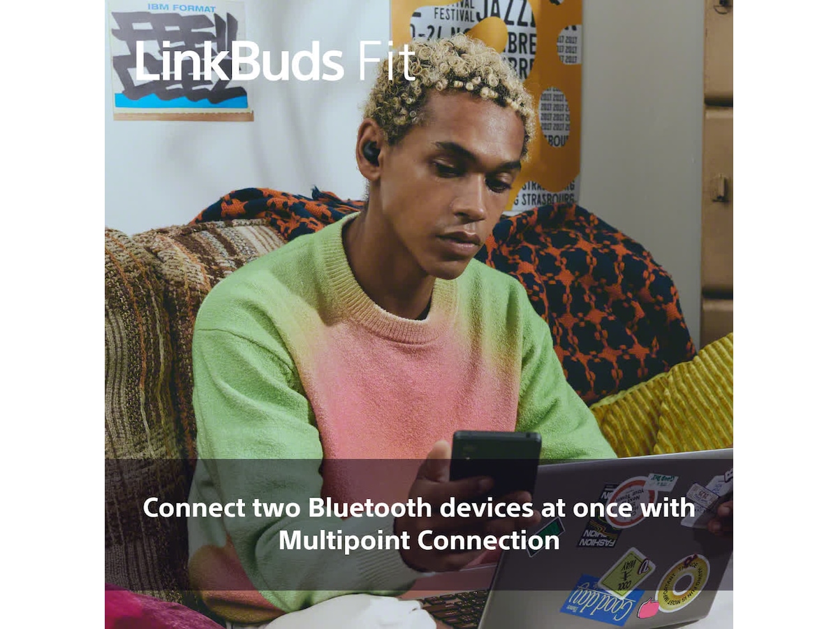 Med Multipoint Connection kan du koble to enheter til LinkBuds Fit via Bluetooth samtidig, og sømløst veksle mellom dem. Så hvis du ser på en film på den bærbare datamaskinen, men så får et anrop, vil LinkBuds Fit automatisk bytte over. Og enda bedre er det at det ikke spiller noen rolle om du har en iPhone, Android, PC eller Mac - disse øreproppene fungerer på tvers av plattformer, slik at du kan holde kontakten med to av dem samtidig.
