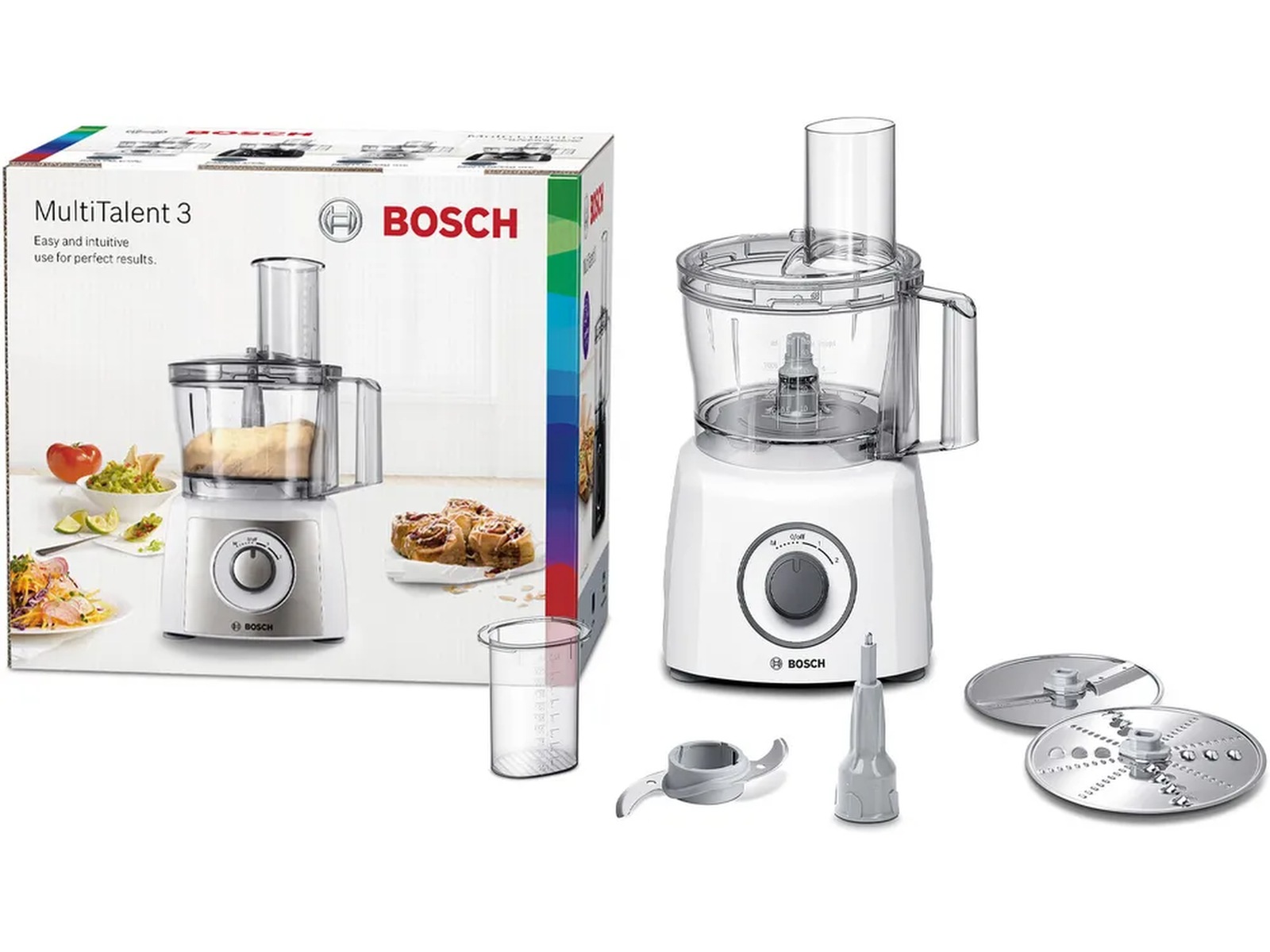 Tilbereder du ofte retter med grønnsaker? Enten du river grønnsaker som gulrøtter eller agurker, hakker løk eller frukt - takket være et bredt spekter av tilbehør som universalkniv i rustfritt stål og en reversibel skive for skjæring og riving får du alt du trenger.