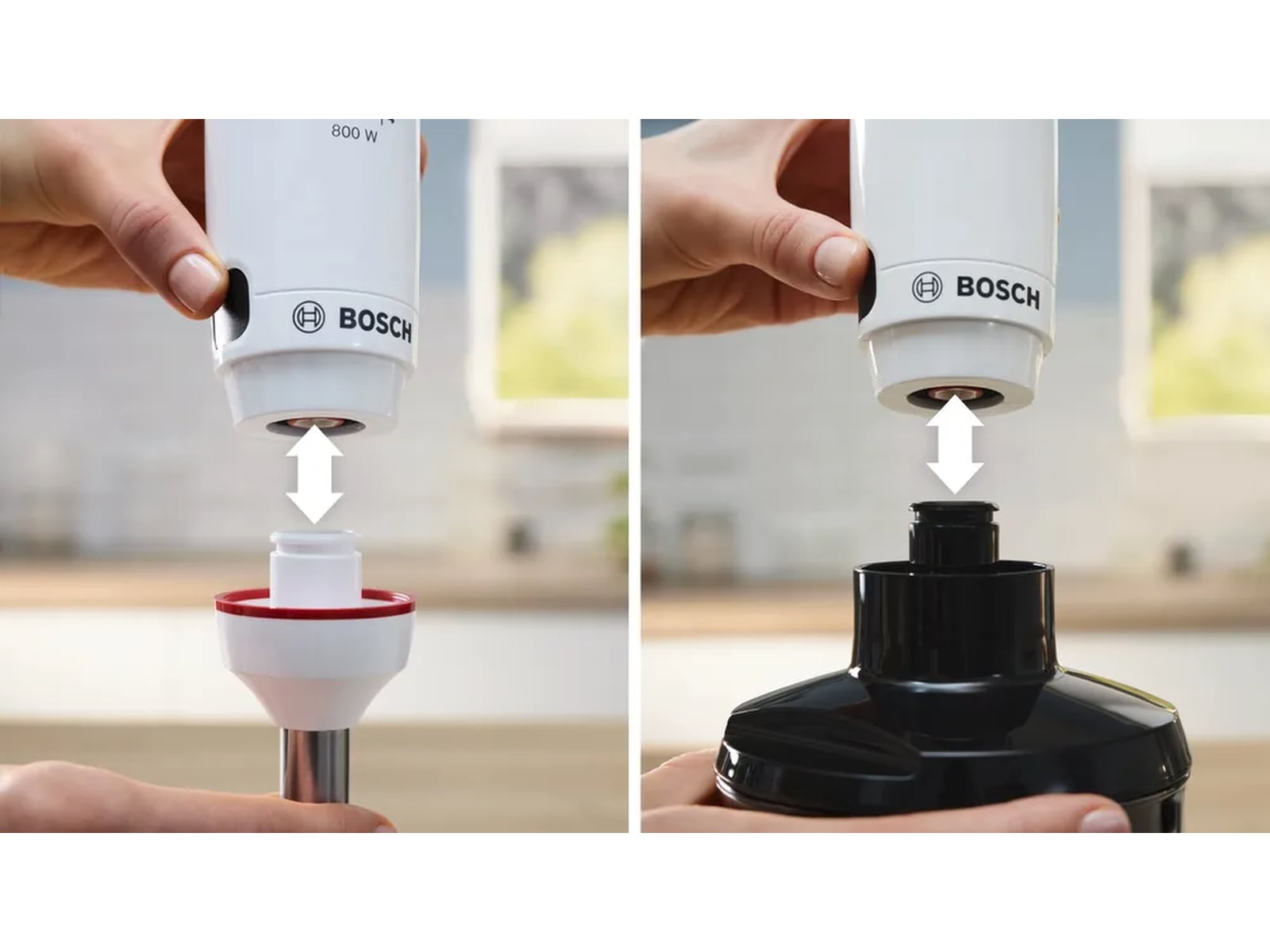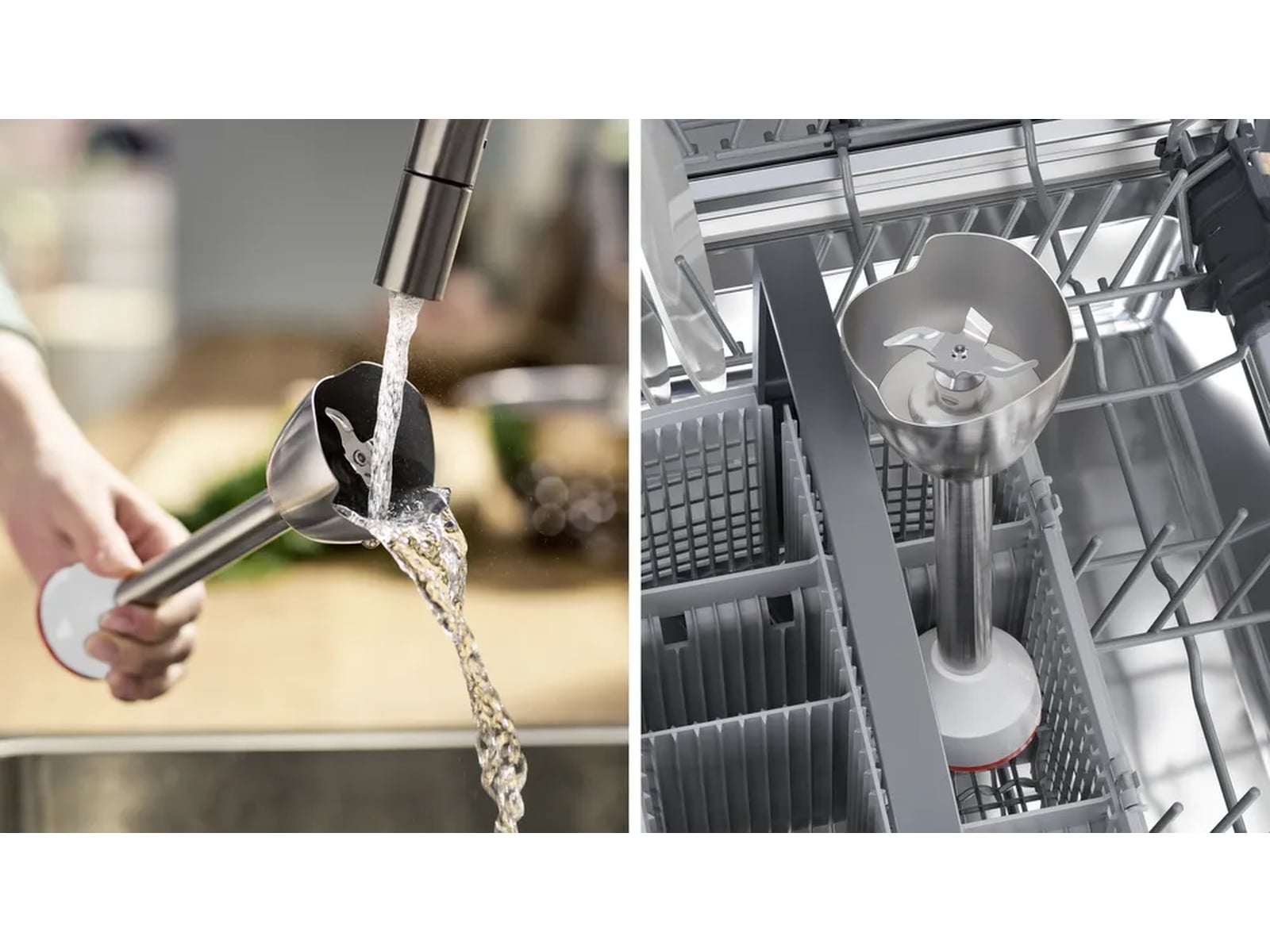 Rengjøringen er enkel og rask. Ved hjelp av klikkfeste kan miksefoten enkelt fjernes fra motordelen for rengjøring under rennende vann eller i oppvaskmaskinen.