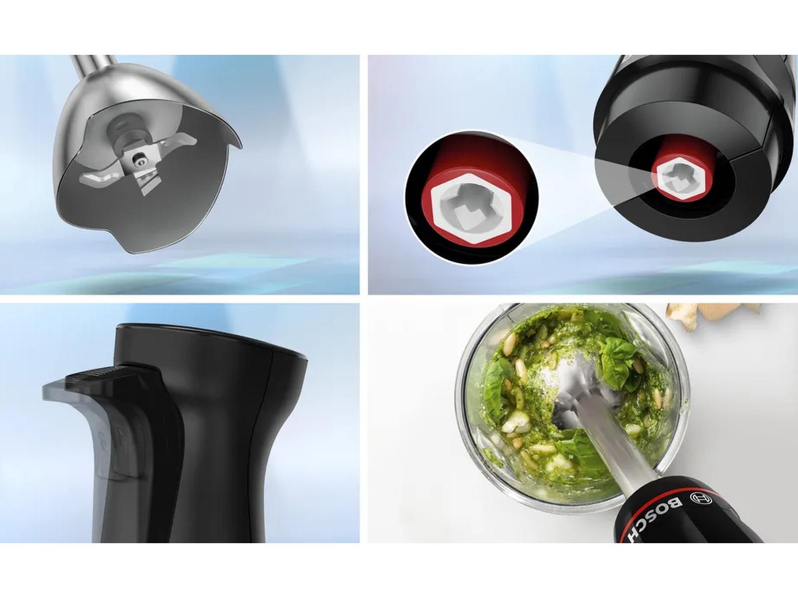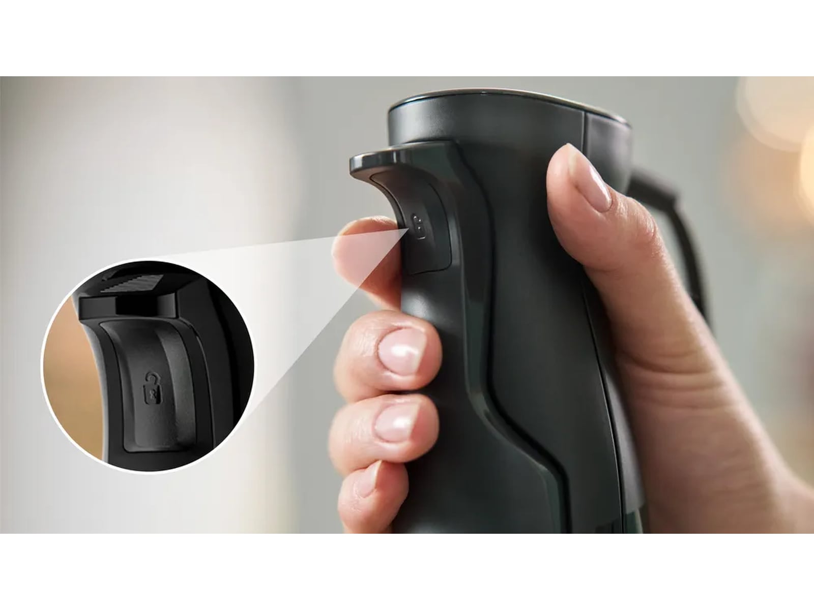Rengjøringen er enkel og rask. Ved hjelp av klikkfeste kan miksefoten enkelt fjernes fra motordelen for rengjøring under rennende vann eller i oppvaskmaskinen.