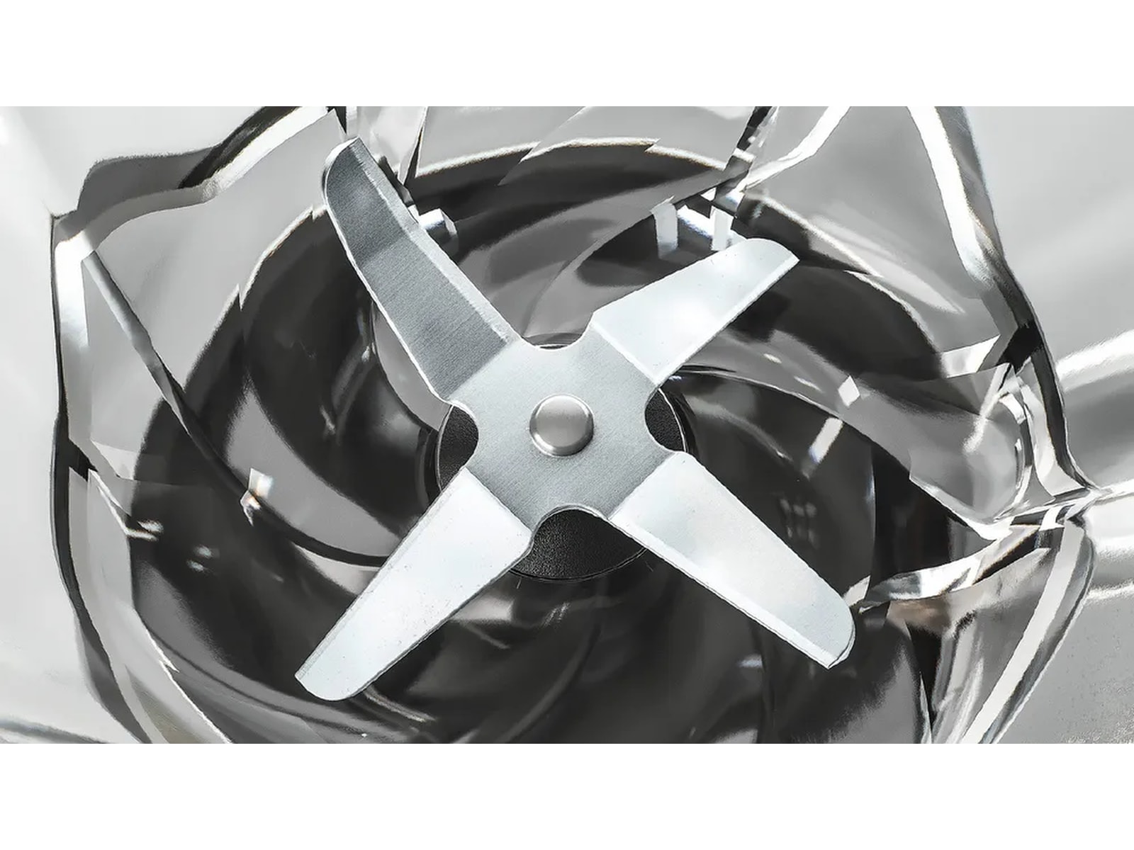 Den bruddsikre høy kvalitets kannen i Tritan er ideell for både varme supper og iskalde drikker. Kannens indre vegg sin spesialformede strømningsforsterkere sørger for optimal flyt av ingrediensene og et jevnt resultat. Tritan inneholder ikke BPA, BPS eller andre bisfenoler.